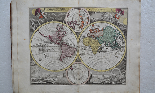 A La Haye, chez P. Gosse & J. Neaulme, 1733. Quatre tomes en deux volumes in-4 (20,5 x 25 cm.), veau fauve marbré de l’époque, armes de Jean Delpech, Marquis de Mérinville au centre des plats, dos à nerfs richement ornés, roulette dorée sur les coupes, tranches rouges (épidermures & accrocs, notamment sur trois coiffes avec perte de cuir ; rousseurs).