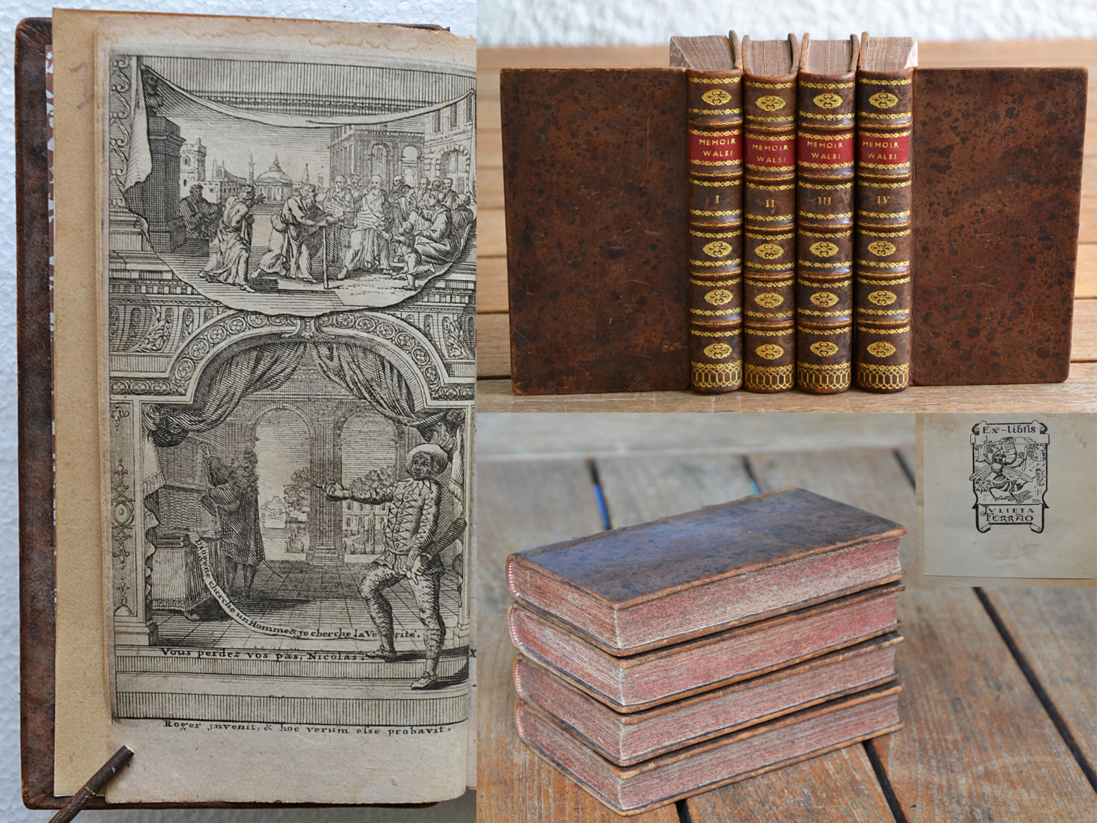 Appartenance : Julieta Bárbara Ferrão (ex-libris imprimé collé sur le premier feuillet blanc du T1).