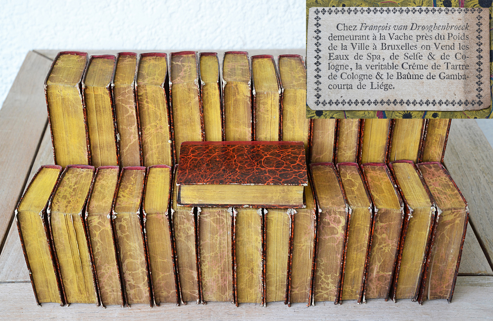 A Bruxelles, chez Eugène Henry Fricx, 1695 – 1730 (le premier volume de chaque partie est daté 1706). 30 volumes in-12 (10 x 16 cm.), 3 parties de 10 volumes chacune, demi-veau cerise, dos ornés de fers rocaille dorés, tranches marbrées (reliure vers 1850).