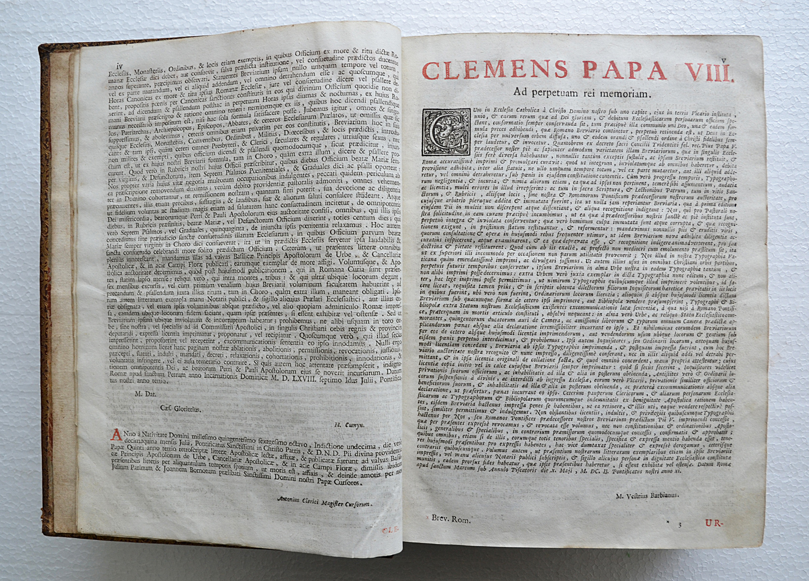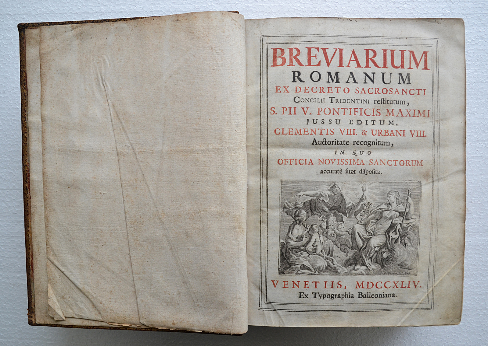 Breviarium Romanum ex decreto sacrosancti Concilii Tridentini restitum, S. PII V. Pontificis maximi – Jussu editum, Clementis VIII. & Urbani VIII. Auctoritate recognitum, in quo officia novissima sanctorum.