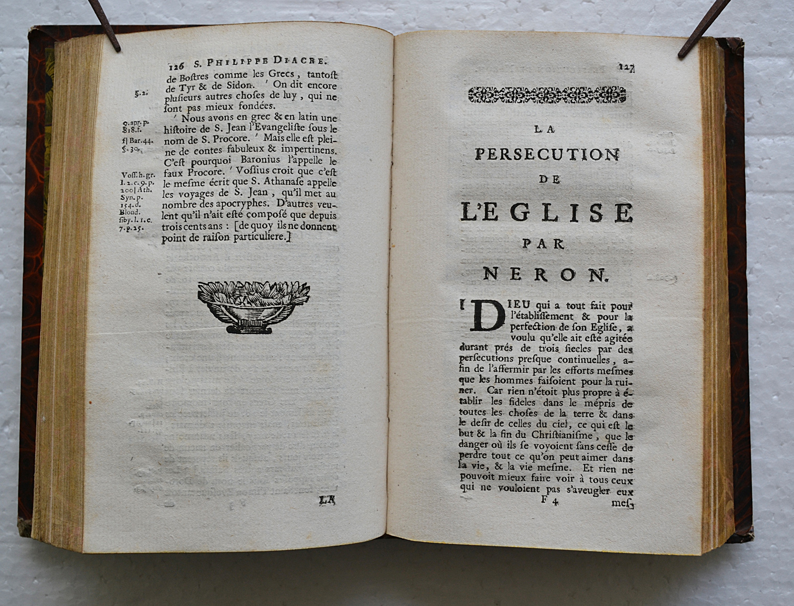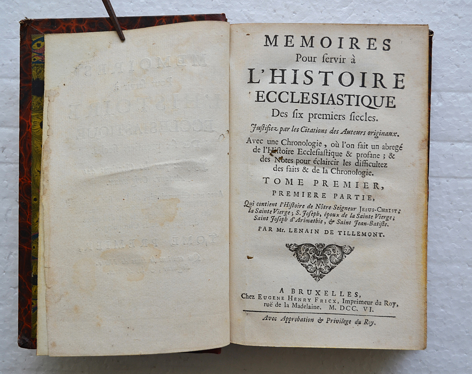 Bel exemplaire, dans une reliure romantique très décorative, de cet important ouvrage du prêtre janséniste Le Nain de Tillemont concernant l’histoire du christianisme primitif. Ensemble rarissime, bien complet des trois parties.