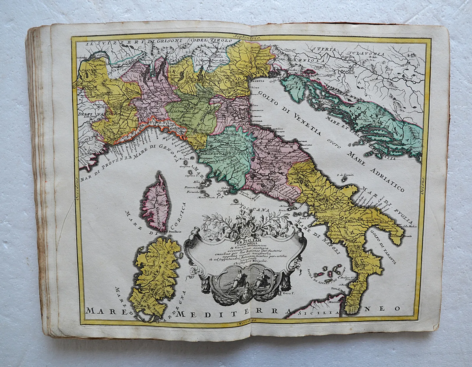 Samuelis Fabri Rect. Gymn. Norib. Atlas Scholastichodoeporicus oder immer stärcker anwachsender Schul- und Reisen-Atlas nach der schwer- und beschwerlichen Last erleichtert und bequemer gemacht sowohl in denen Alten für die gelehrte; als auch in denen Neusten kleinen, doch vollständigen Mappen, für die jenige, welche in denen Land-Charten noch unerfahren vom Neuen ausgefertigt von Christoph Weigel. Der Kaiserl. Reichs Post gegen-über wohnhafft in Nürnberg.