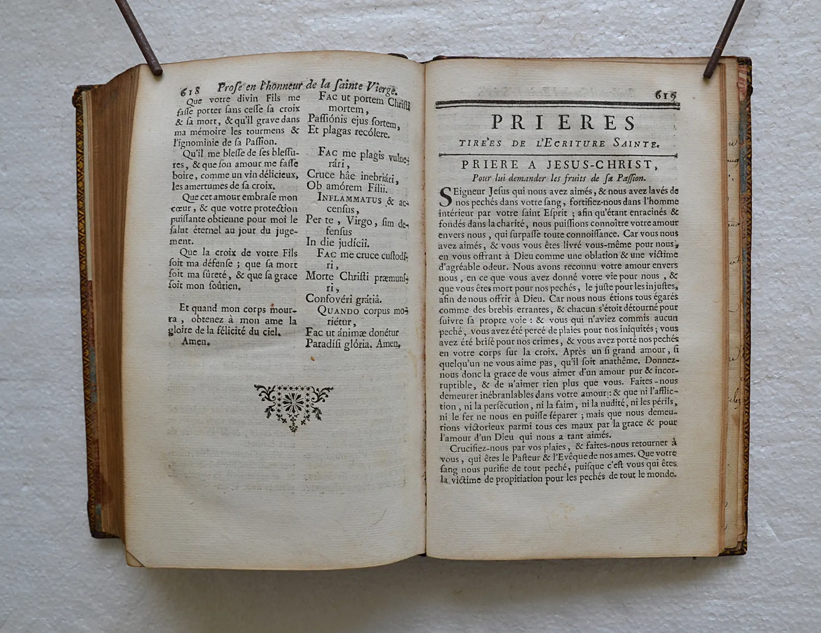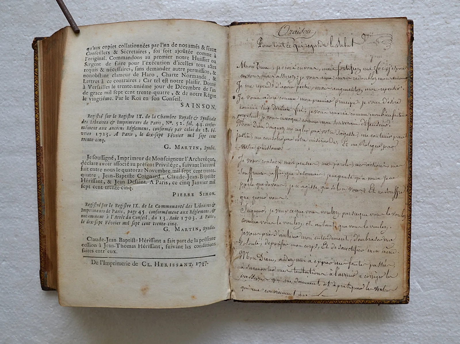 Oraisons manuscrites datées du 8 juillet 1818 sur les trois derniers feuillets blancs.
