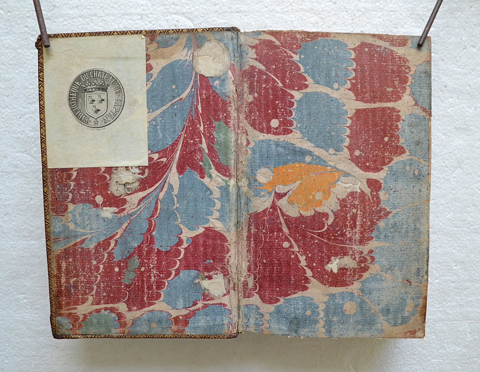 Bibliothèque du château de Captan à Audignon dans les Landes (ex-libris héraldique gravé par Stern collé sur la première contregarde).