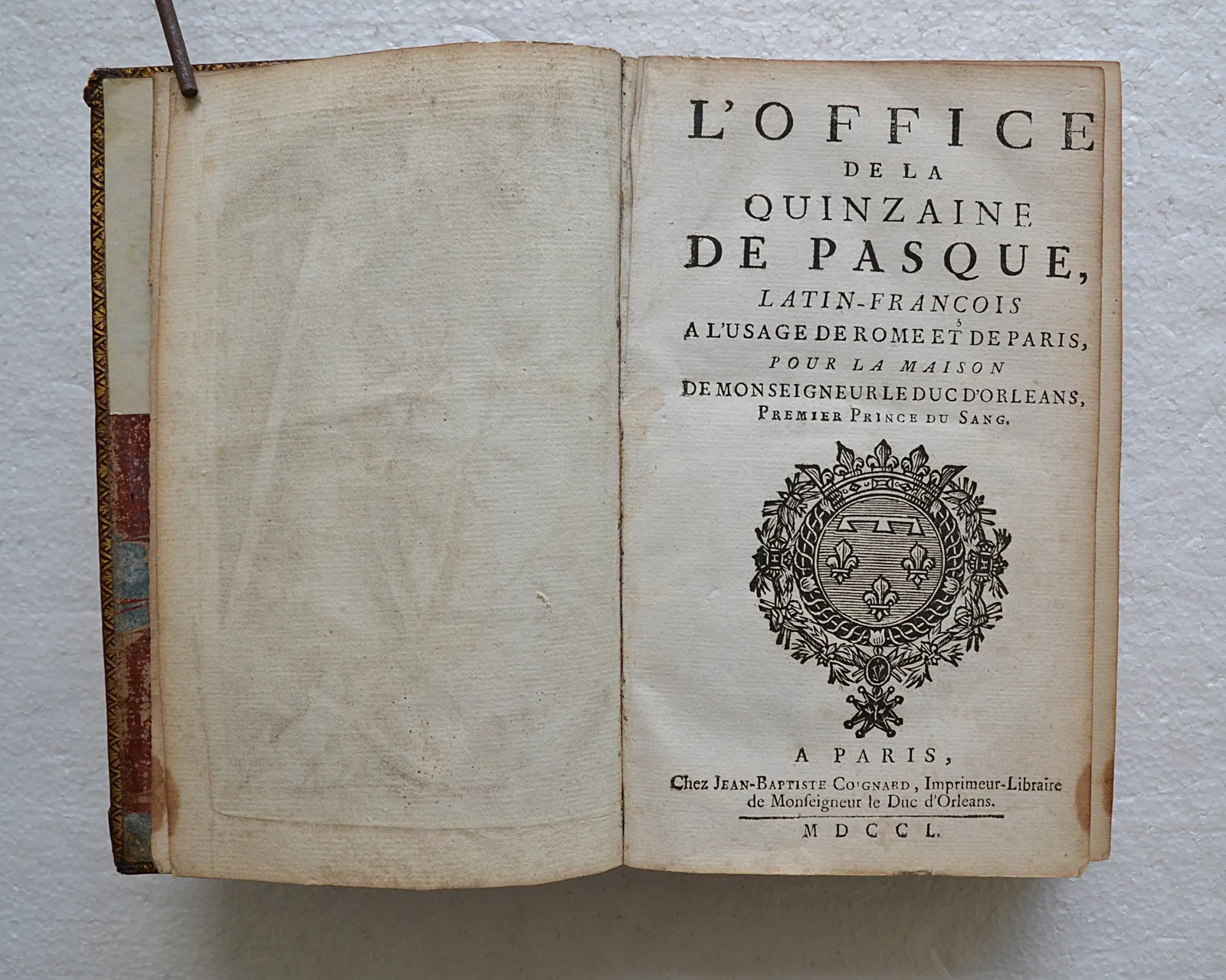 L’Office de la quinzaine de Pasque, latin-François, à l’usage de Rome et de Paris, pour la Maison de Monseigneur le Duc d’Orléans, premier prince du sang.