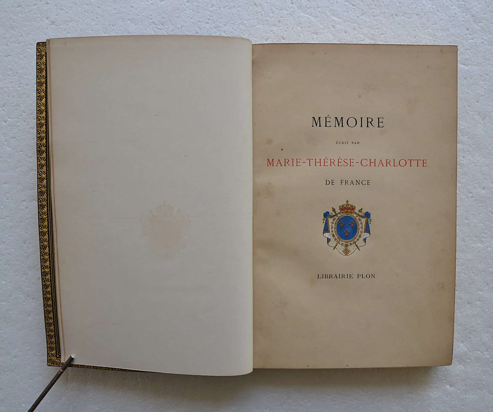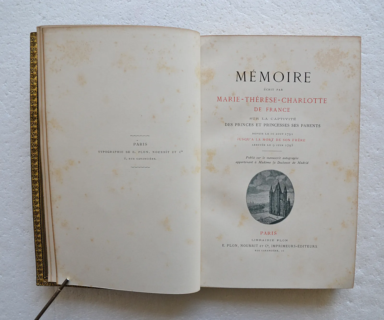 Mémoire écrit par Marie-Thérèse-Charlotte de France sur la captivité des princes et princesses ses parents, depuis le 10 août 1792 jusqu’à la mort de son frère arrivée le 9 juin 1795. Publié sur le manuscrit autographe appartenant à Madame la Duchesse de Madrid.