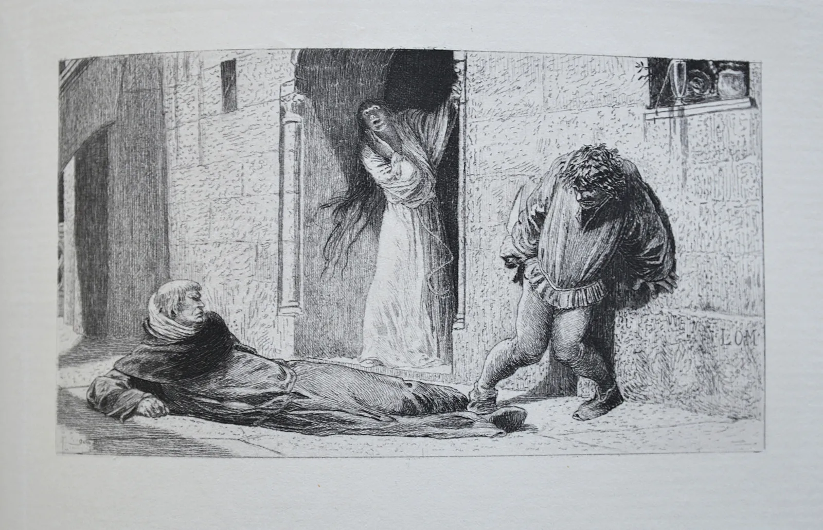 73 illustrations par Luc-Olivier Merson gravées à l’eau-forte par Géry-Richard. Impression en taille-douce par Salmon.