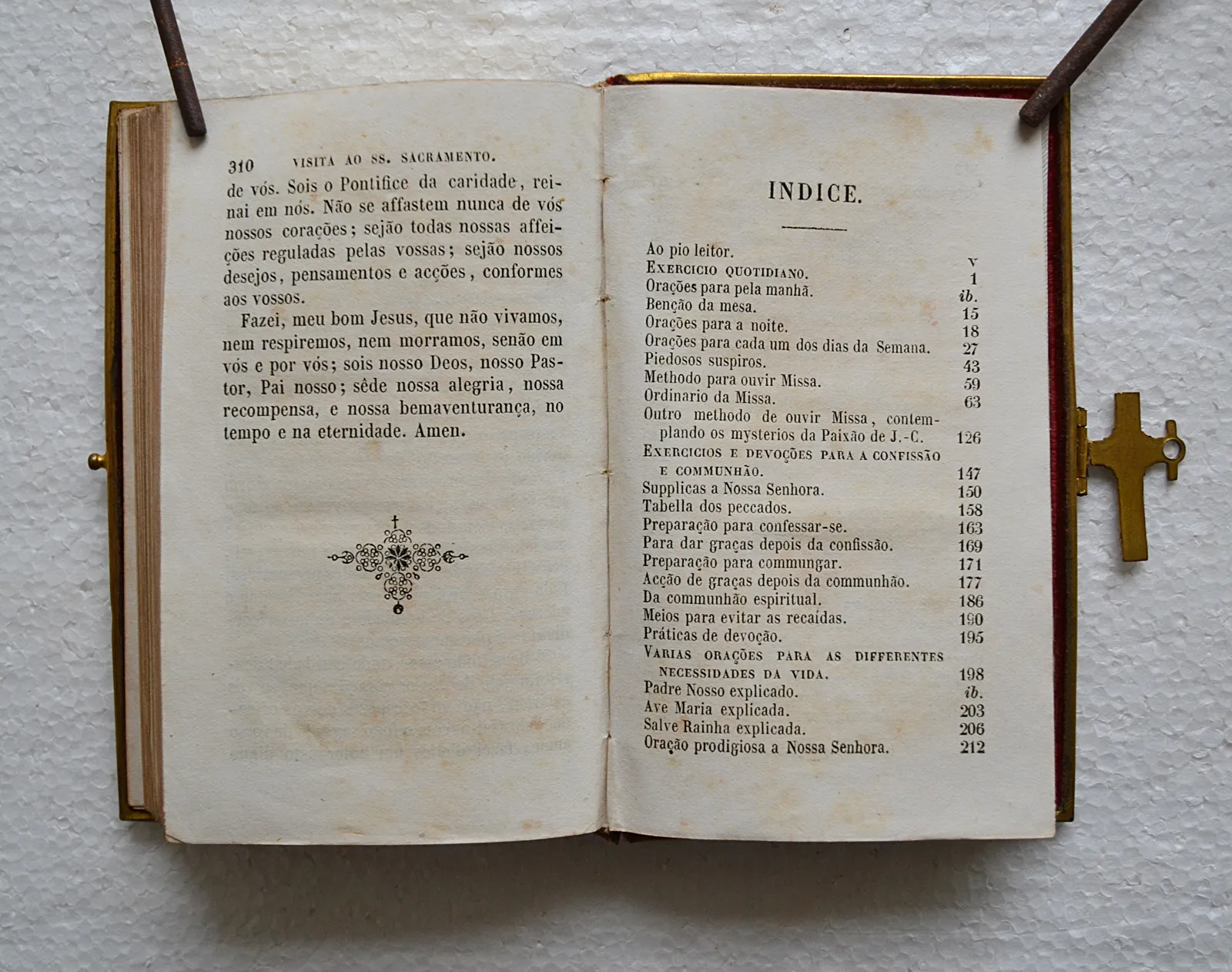 Un volume in-12 (8 x 12 cm.) de : VIII – 312 pages ; velours grenat, décor de métal doré sur les plats, titre sur un morceau de métal doré sur le dos, tranches dorées, fermoir représentant une croix en métal doré (reliure de l’époque).