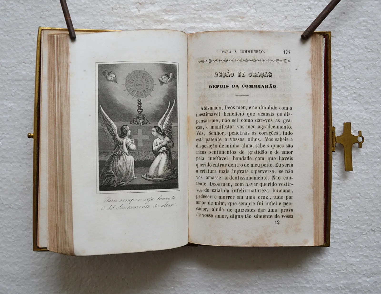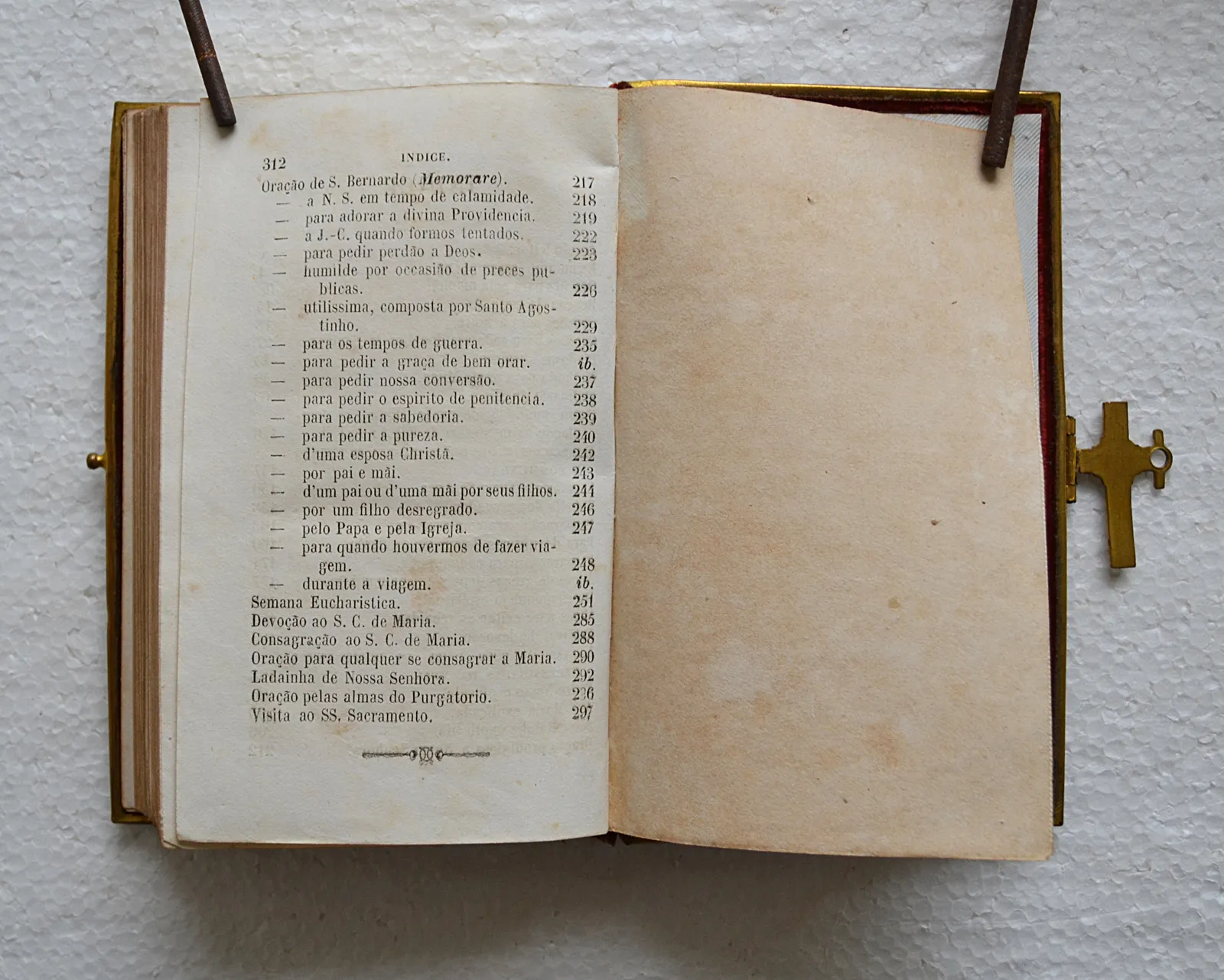 Exceptionnelle reliure en velours grenat et métal doré de l'époque, avec fermoir en croix dorée. Titre chromolithographié et trois gravures hors-texte. Étiquette d'un marchand de papier de Rio de Janeiro.