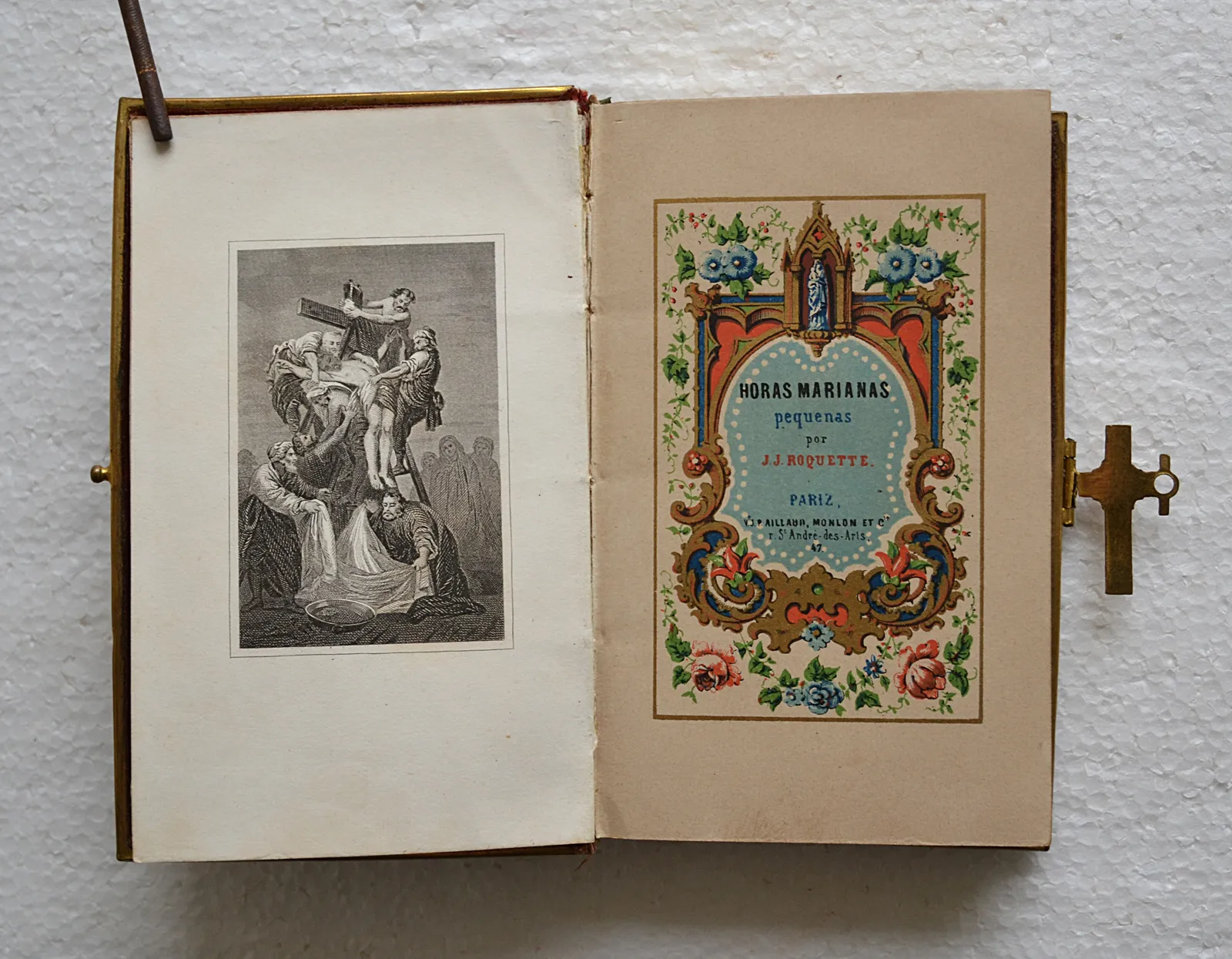 Très rares Petites Heures Mariales rédigées par le prêtre et lexicographe José Ignacio Roquette (1801-1870), dans une exceptionnelle reliure en velours et métal doré de l’époque.