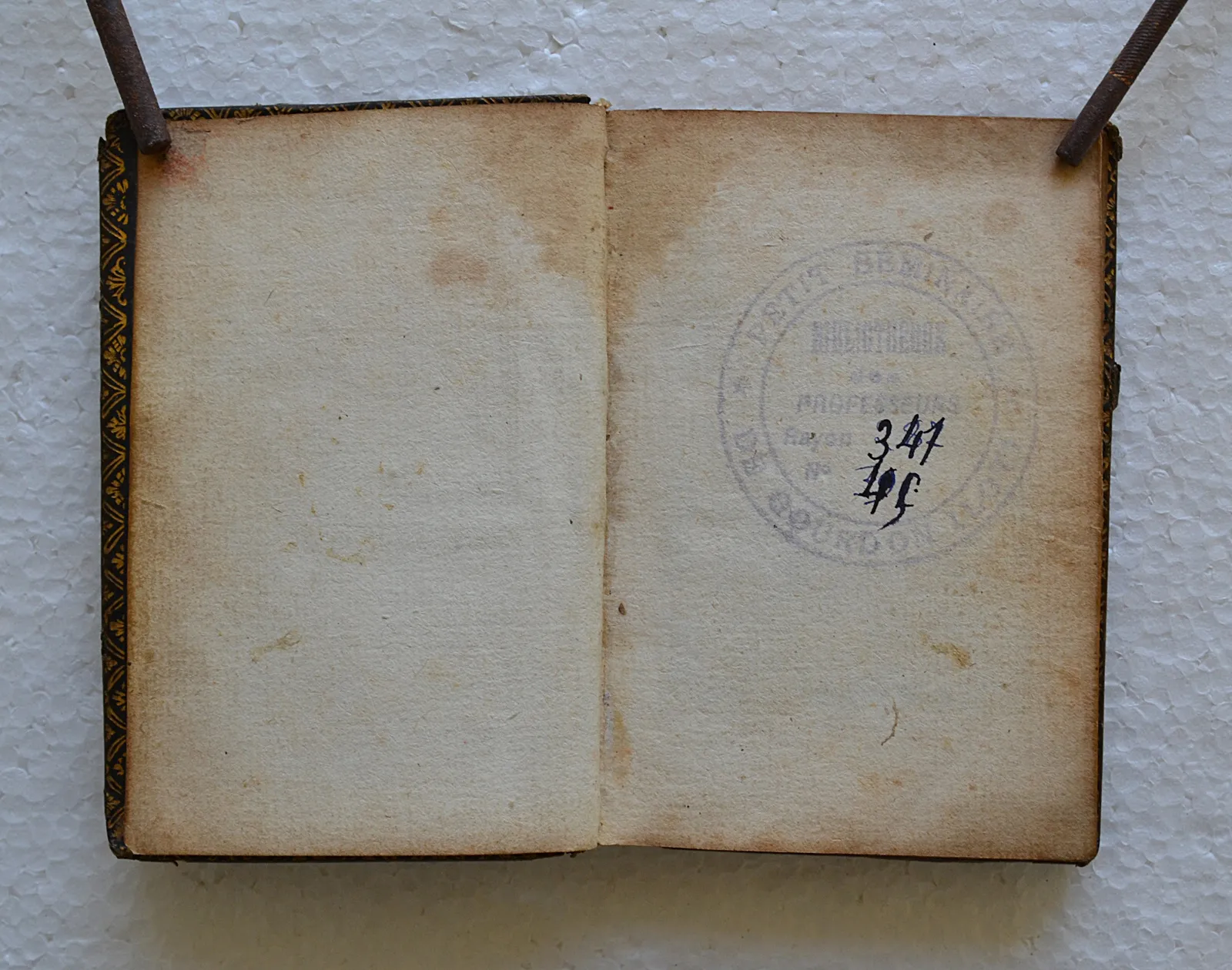 Appartenances : 1] Petit séminaire de Gourdon (tampon sur le premier feuillet blanc) — 2] Ch. Levasseur (ex-libris manuscrit sur la première contregarde) — 3] G. Lev. (ex-libris manuscrit sur le premier feuillet blanc) — 4] Famille Kiralfy (photo collée sur la dernière contregarde). Il doit très certainement s’agir de la famille des frères Kiralfy, célèbres producteurs de burlesques et de spectacles très influents en Europe et aux États-Unis vers la fin du XIX° siècle.
