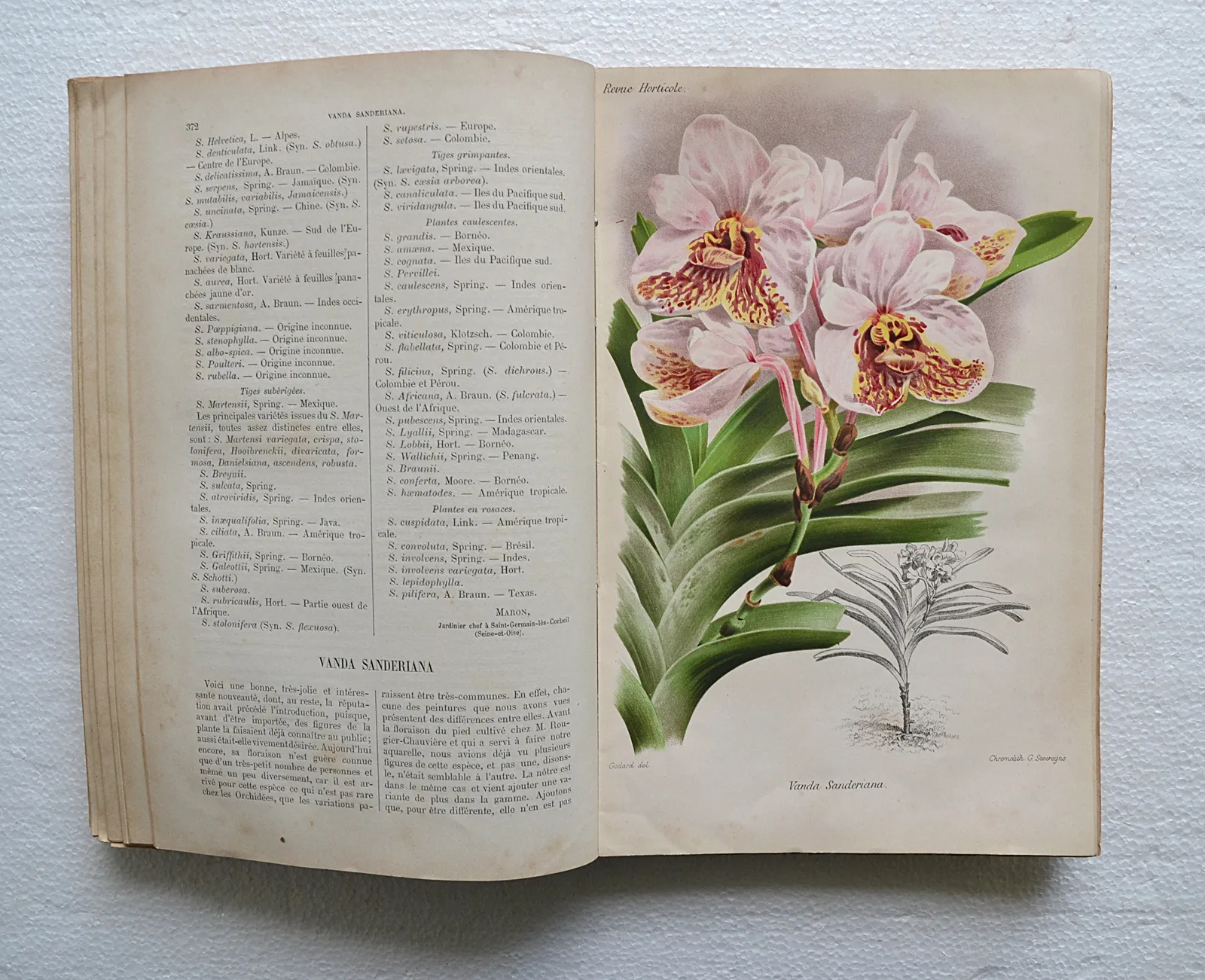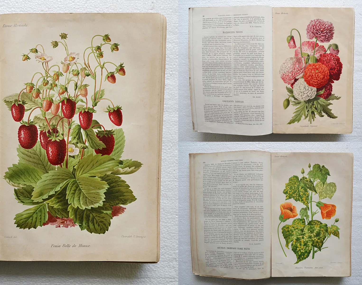 Bon exemplaire de cette célèbre revue horticole du XIX° siècle, illustrée de 24 magnifiques chromolithographies hors-texte, dessinées par Godard, et de nombreux dessins en noir dans le texte.