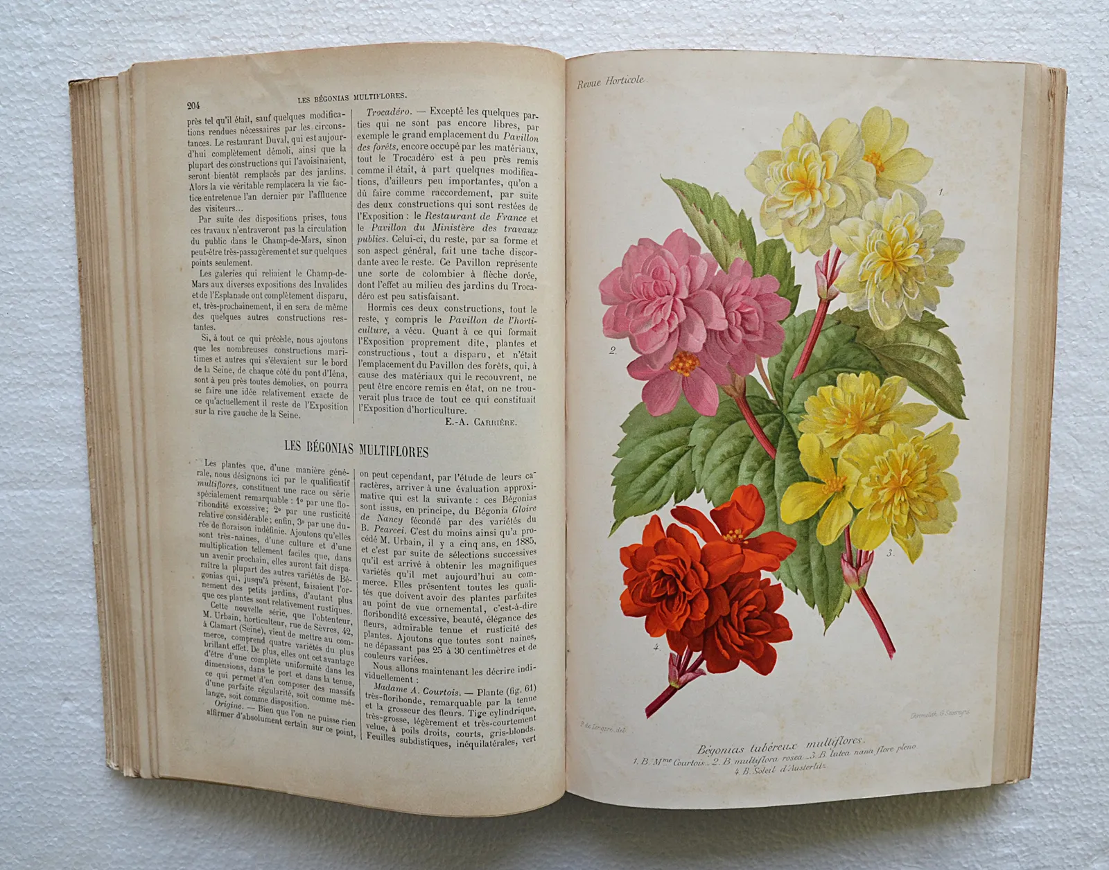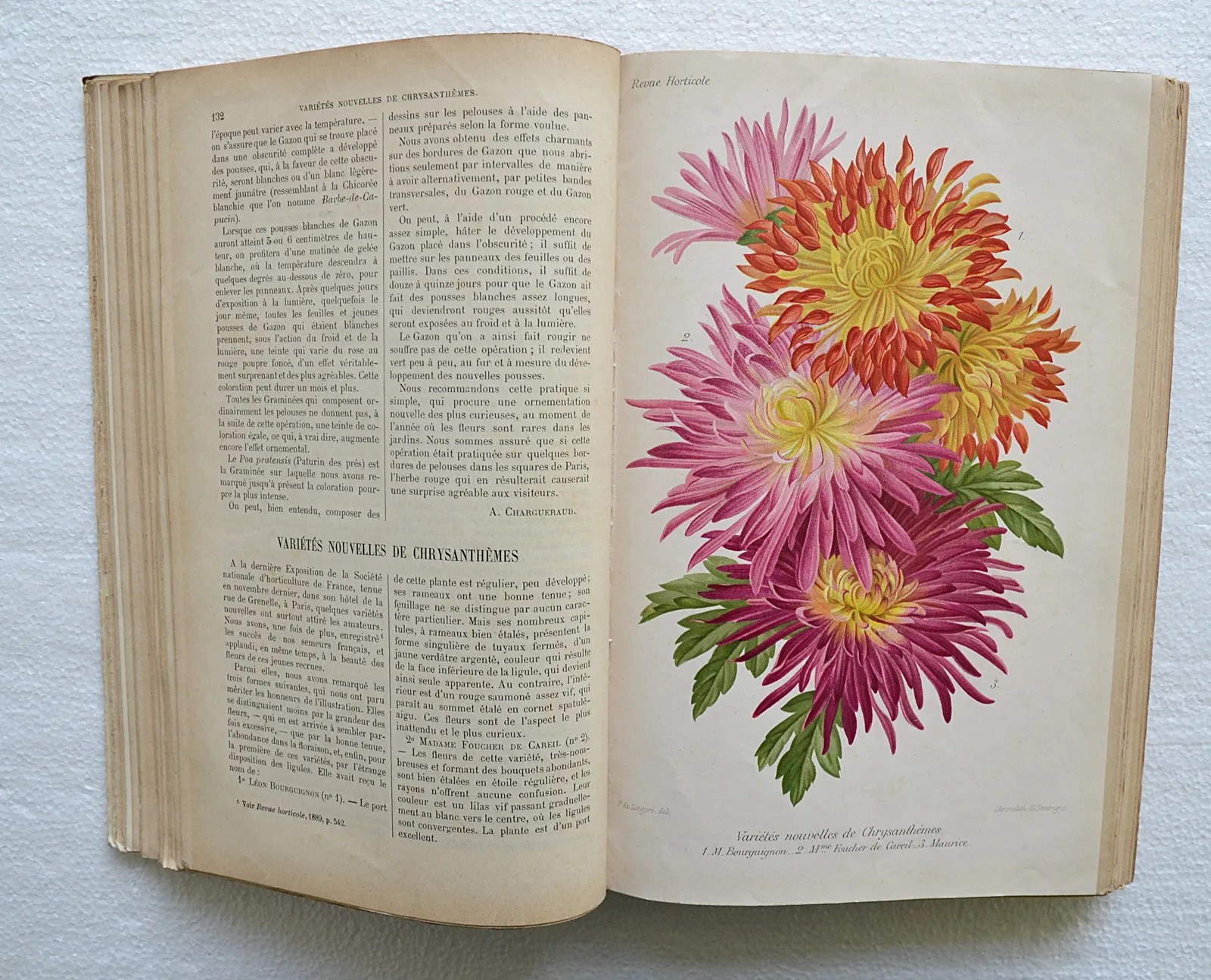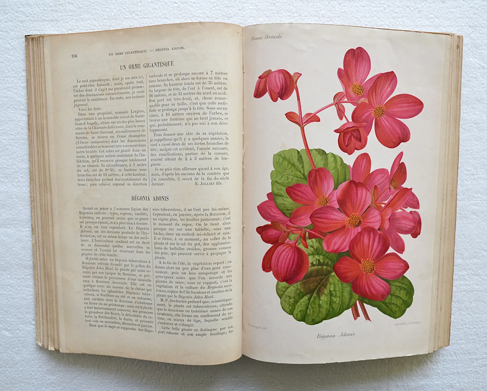 Bon exemplaire de cette célèbre revue horticole du XIX° siècle, illustrée de 24 magnifiques chromolithographies hors-texte dessinées par Godard, et de nombreux dessins en noir dans le texte.