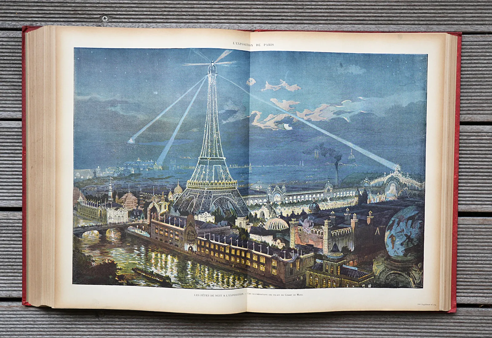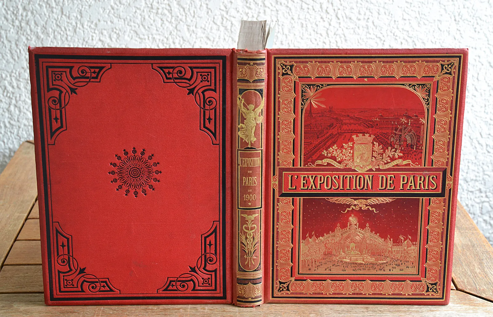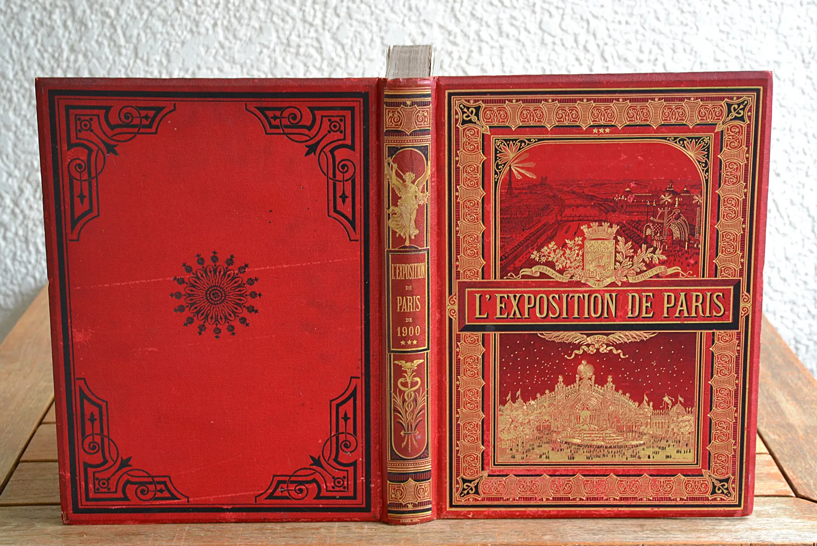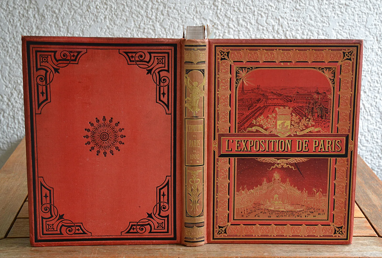 Trois volumes en cartonnage rouge de l'éditeur consacrés à l'Exposition universelle de 1900, illustrés de 120 planches hors-texte dont 32 en couleurs et 3 panoramas dépliants.