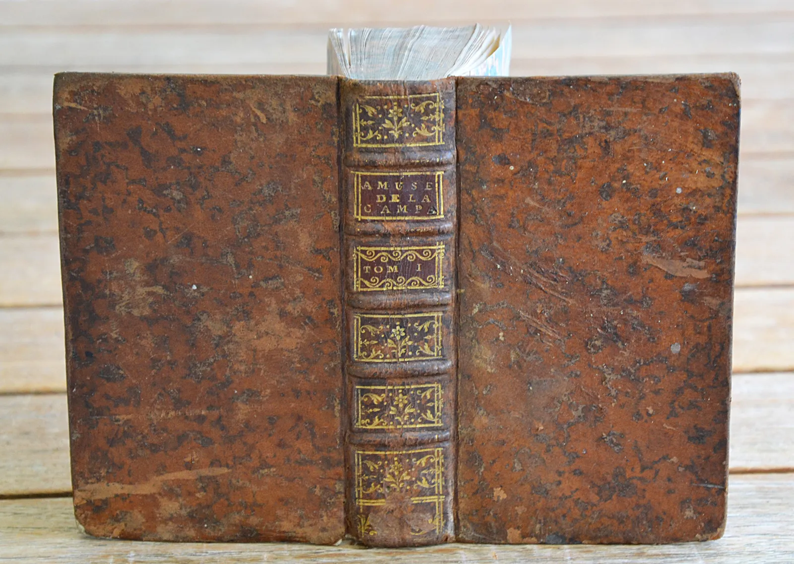 Un volume in-12 (10 x 16,5 cm.) de (9ff.) – 562 pp. – (1f.) ; basane fauve marbrée, dos à nerfs orné, filet doré sur les coupes, tranches marbrées (reliure de l’époque).