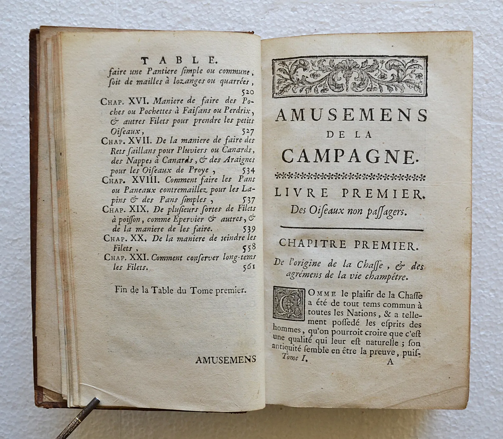 Amusemens de la campagne, ou nouvelles ruses innocentes, qui enseignent la manière de prendre aux pièges toutes sortes d’oiseaux & de bêtes à quatre pieds (…). Tome premier.