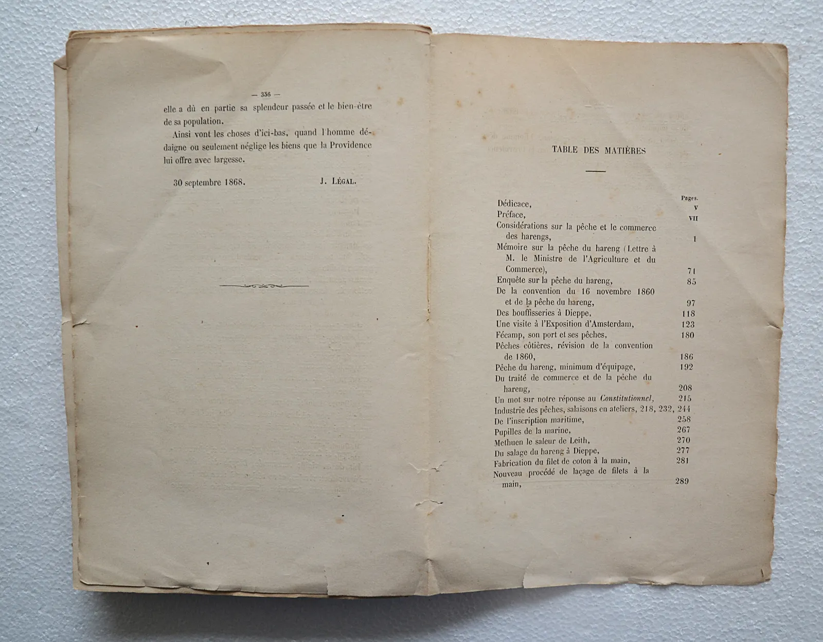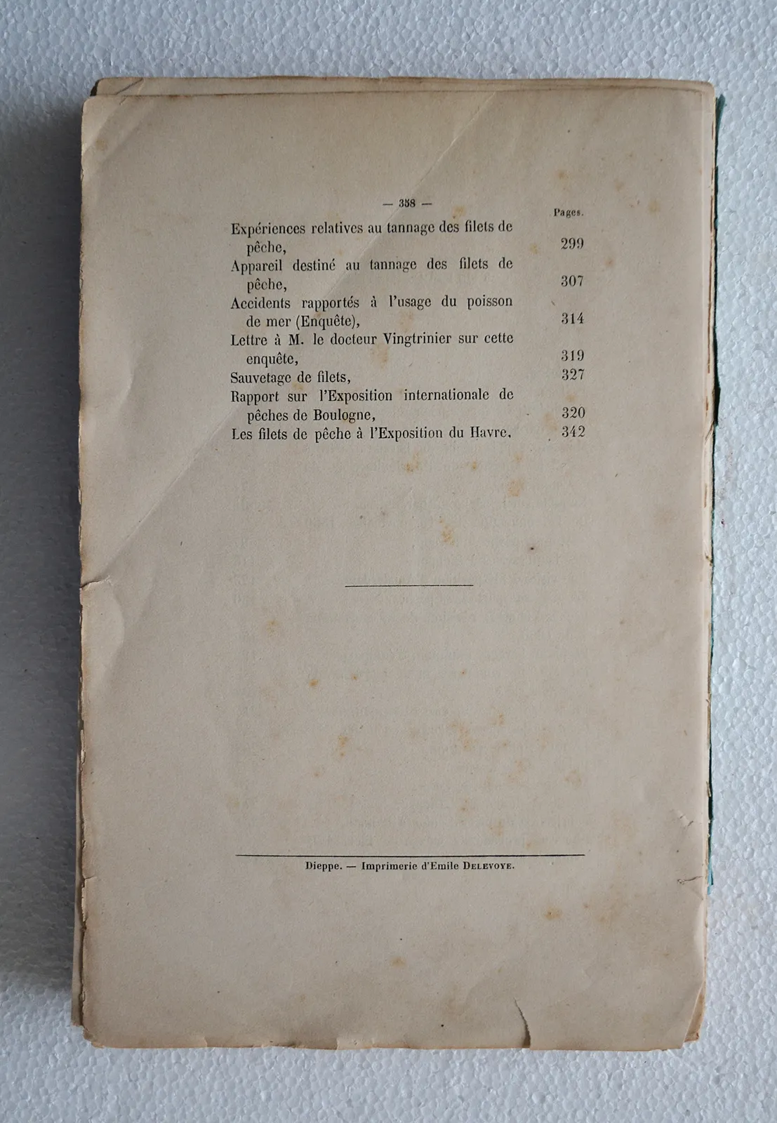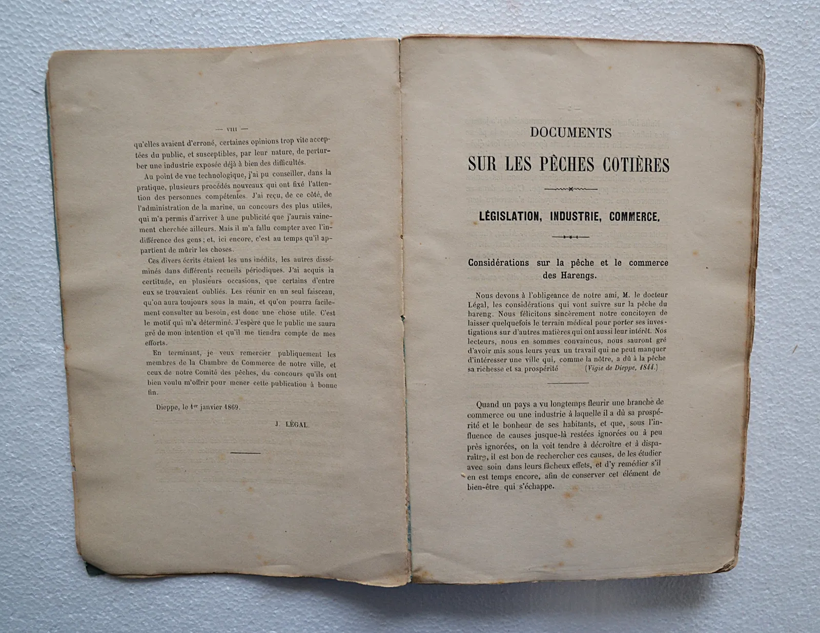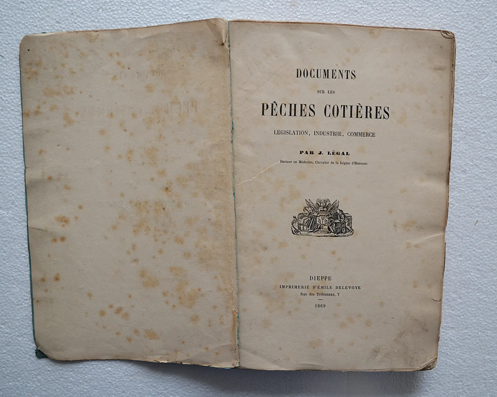 Rarissime édition originale imprimée à Dieppe en 1869, traitant de la législation, de l'industrie et du commerce des pêches côtières.