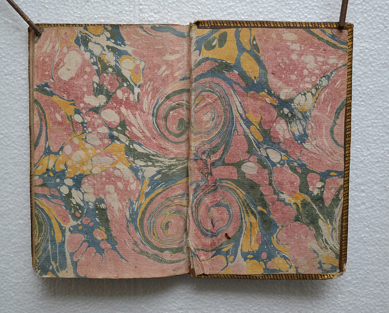 Un volume in-8 (11 x 17,3cm.) de (2ff.) – 83 pages, basane brune marbrée, trois filets dorés sur les plats, dos lisse orné, pièce de titre en maroquin rouge, filet doré sur les coupes, roulette dorée à l’intérieur, tranches dorées (reliure de l’époque).