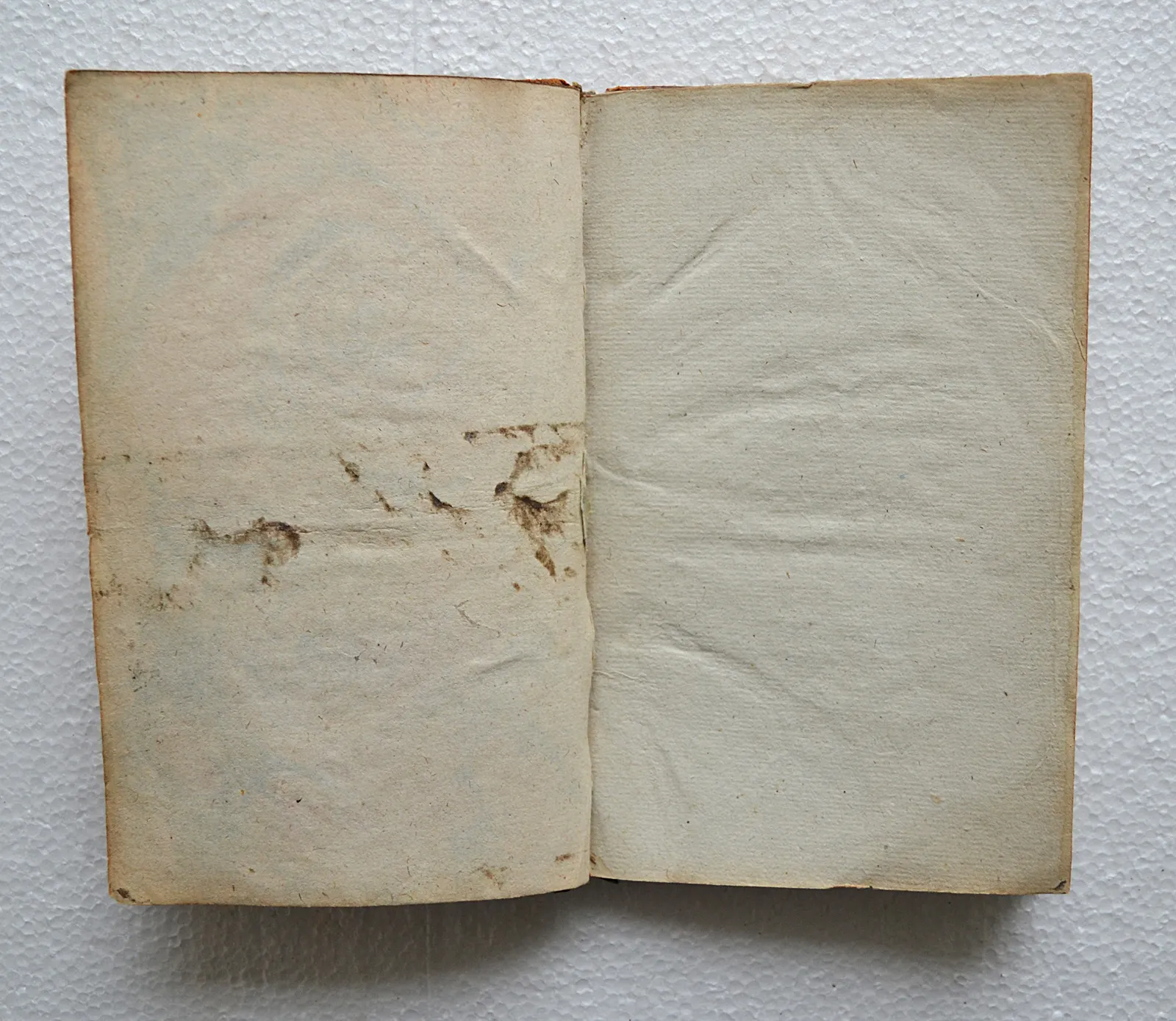 Quelques accrocs, notamment sur les coiffes & les coins ; épidermures ; deux mors fendillés ; salissures au verso de la première contregarde (cf. photo).