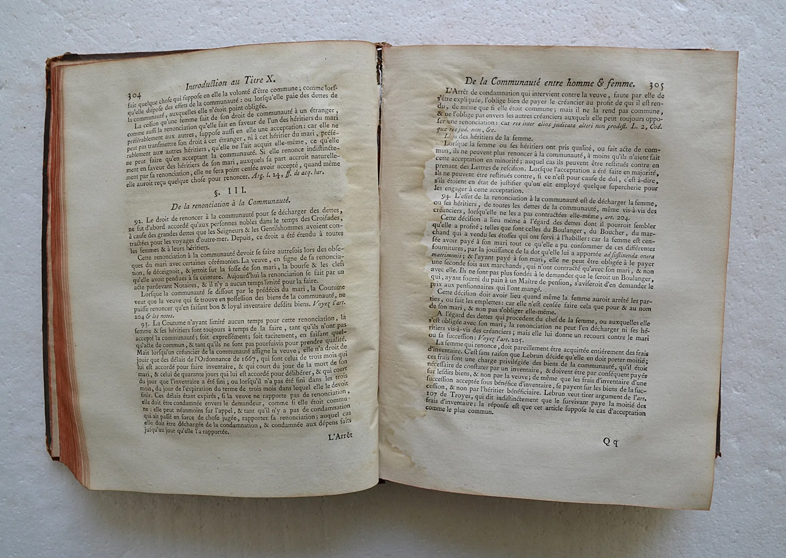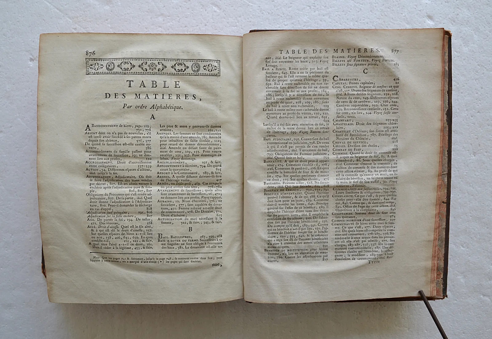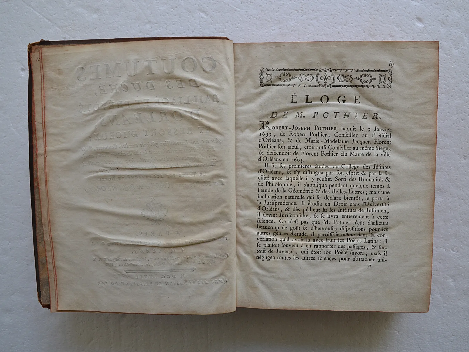 Fort in-4 en veau fauve marbré de l'époque, provenance de Claude Huet de Froberville, député du Loiret en 1791. Bel ex-libris héraldique. Classique du droit coutumier de l'Orléanais.