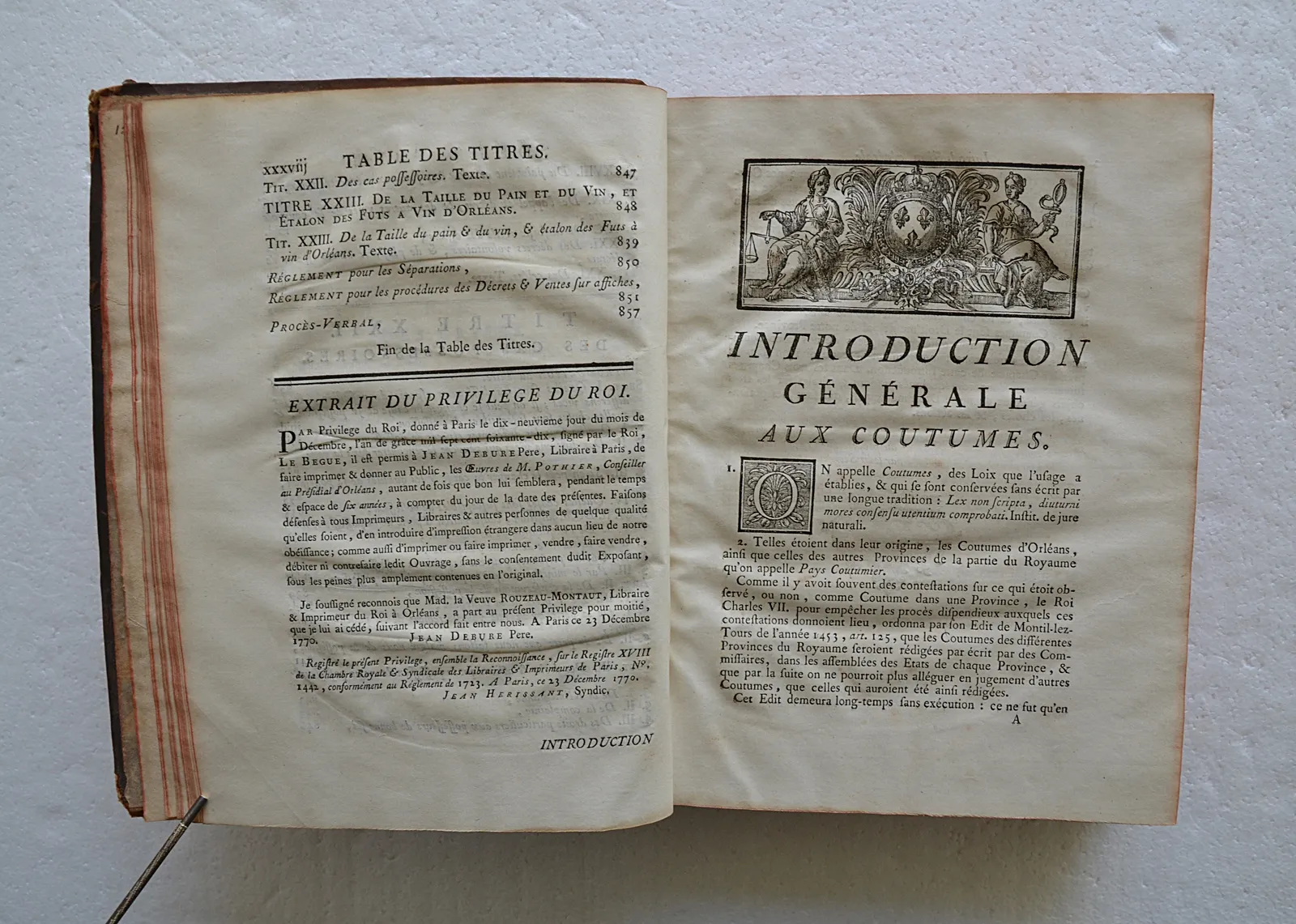 Coutumes des Duché, Bailliage et Prévôté d’Orléans, et ressort d’iceux ; avec une introduction générale aux dites coutumes, & des introductions particulières à la tête de chaque titre, corrigées & augmentées, dans lesquelles les principes des matières contenues dans le titre, sont exposés & développés.