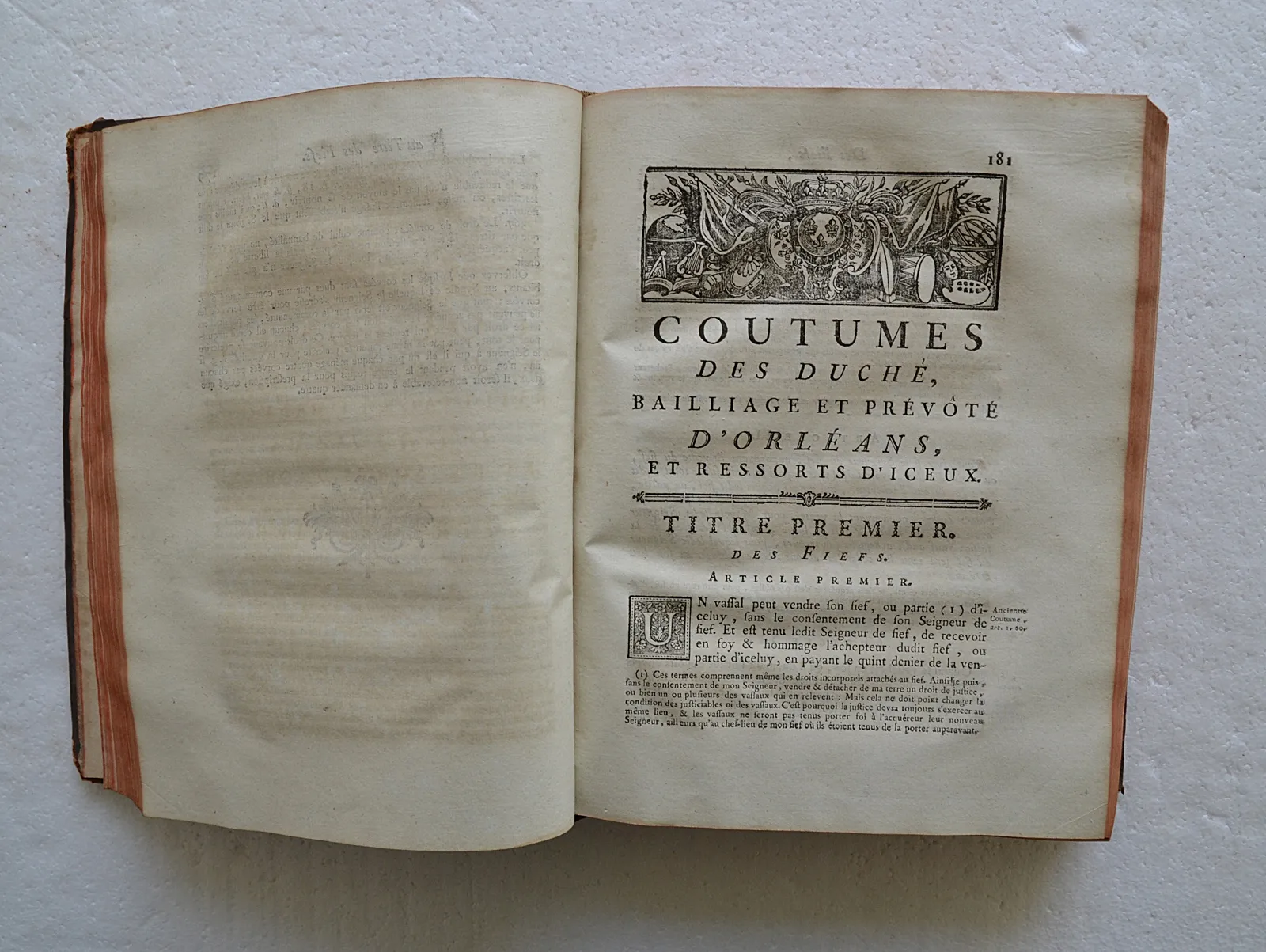 Coutumes des Duché, Bailliage et Prévôté d’Orléans, et ressort d’iceux ; avec une introduction générale aux dites coutumes, & des introductions particulières à la tête de chaque titre, corrigées & augmentées, dans lesquelles les principes des matières contenues dans le titre, sont exposés & développés. Le texte est accompagné de notes.
