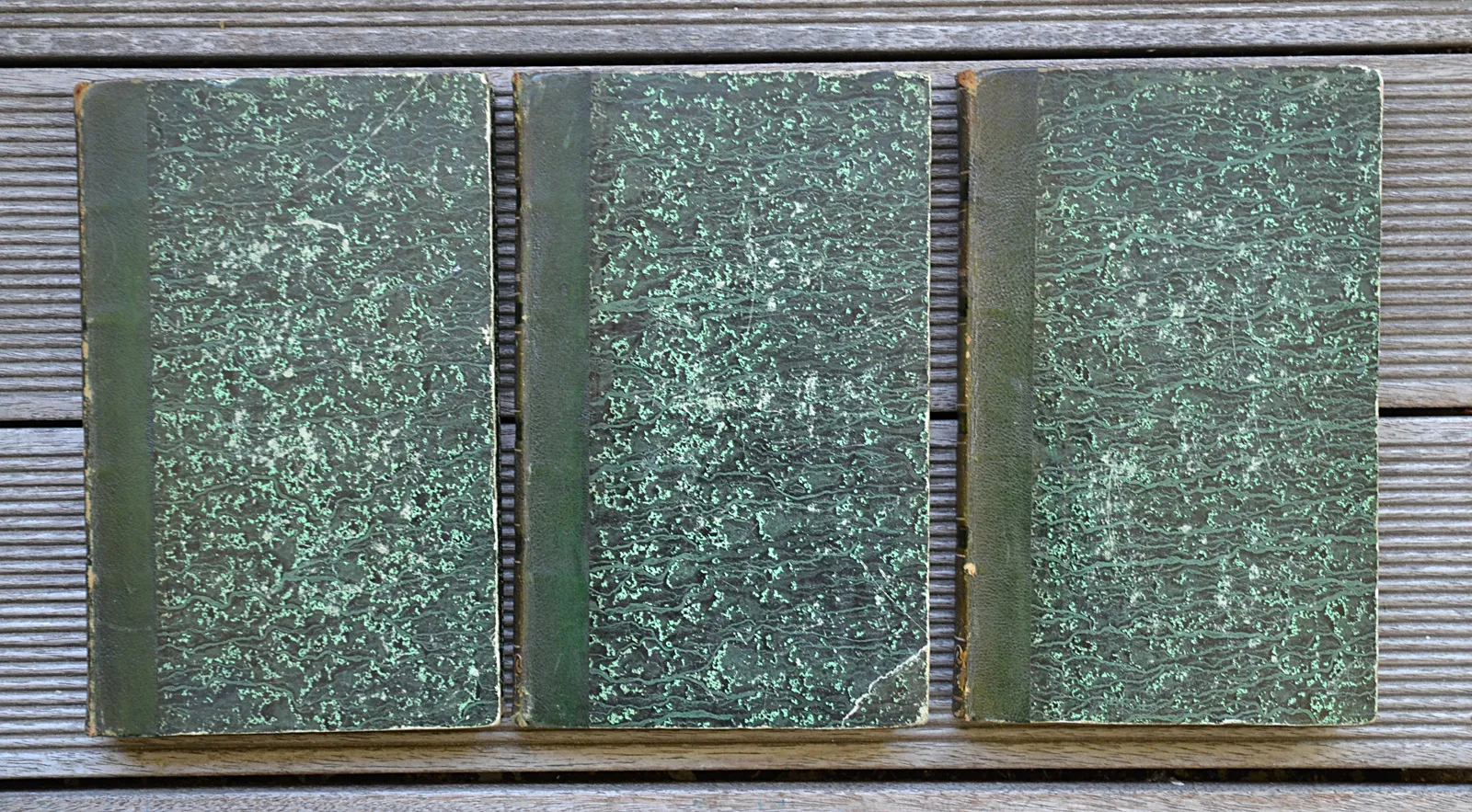 Trois volumes in-8 (13,5 x 21,5 cm.) de (2ff.) – IV – 458 pp. + (2ff.) – 506 pp. + (2ff.) – 470 pp. ; demi-basane verte de l’époque, dos lisses ornés, tranches marbrées.