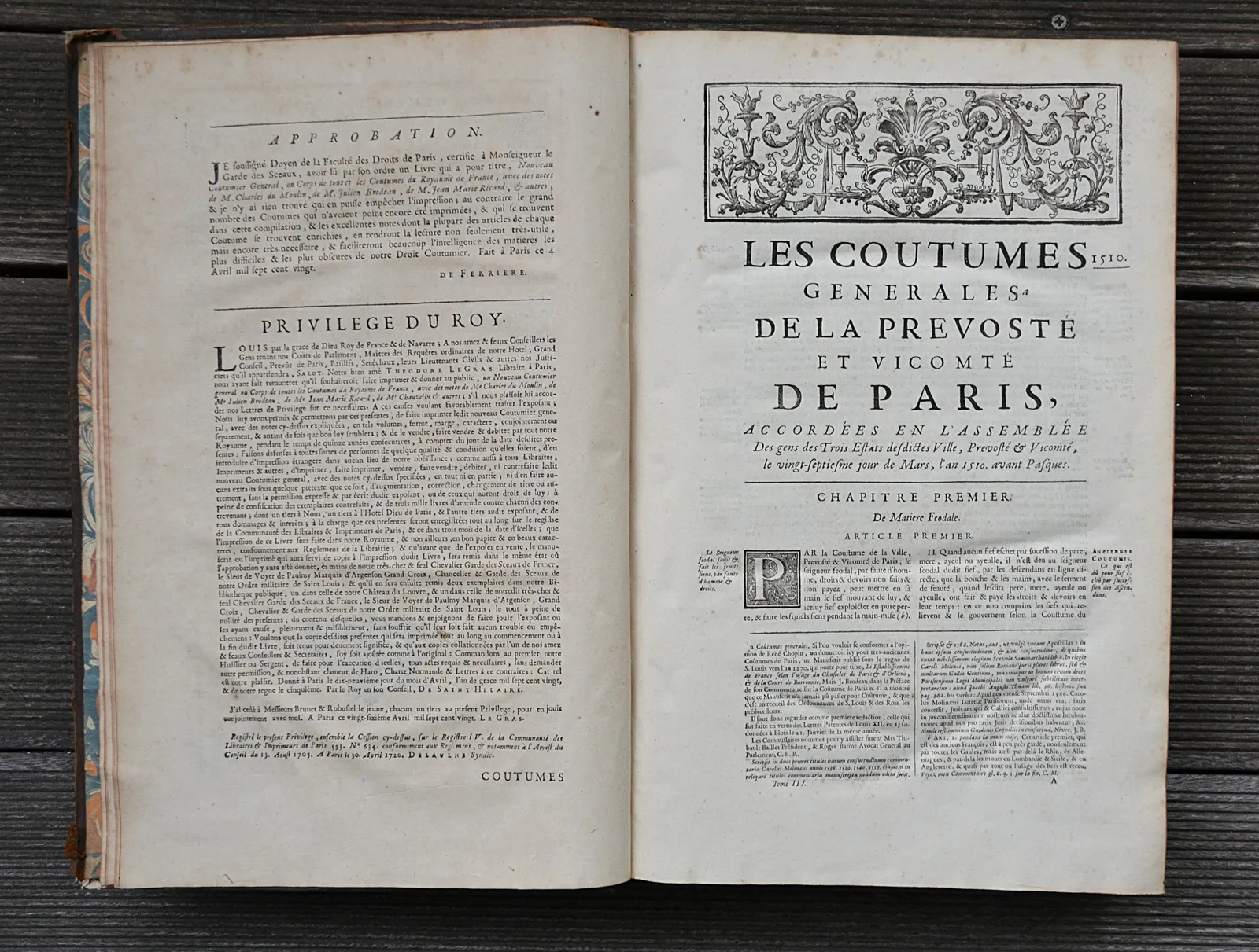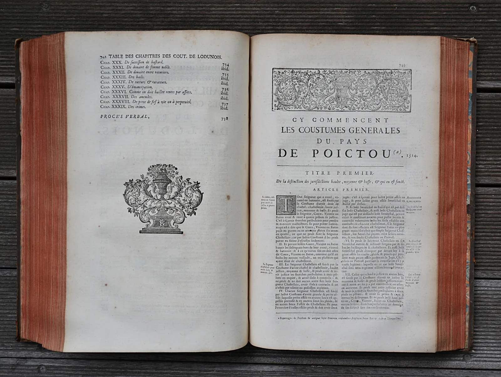 Mis en ordre, & accompagné de sommaires en marge des articles, d’interprétation des dictions obscures employées dans les textes, de listes alphabétiques des lieux régis par chaque coutume, et enrichi de nouvelles notes tirées des principales observations des commentateurs, & des jugemens qui ont éclairci, interprété, ou corrigé quelques points & articles de coutumes.