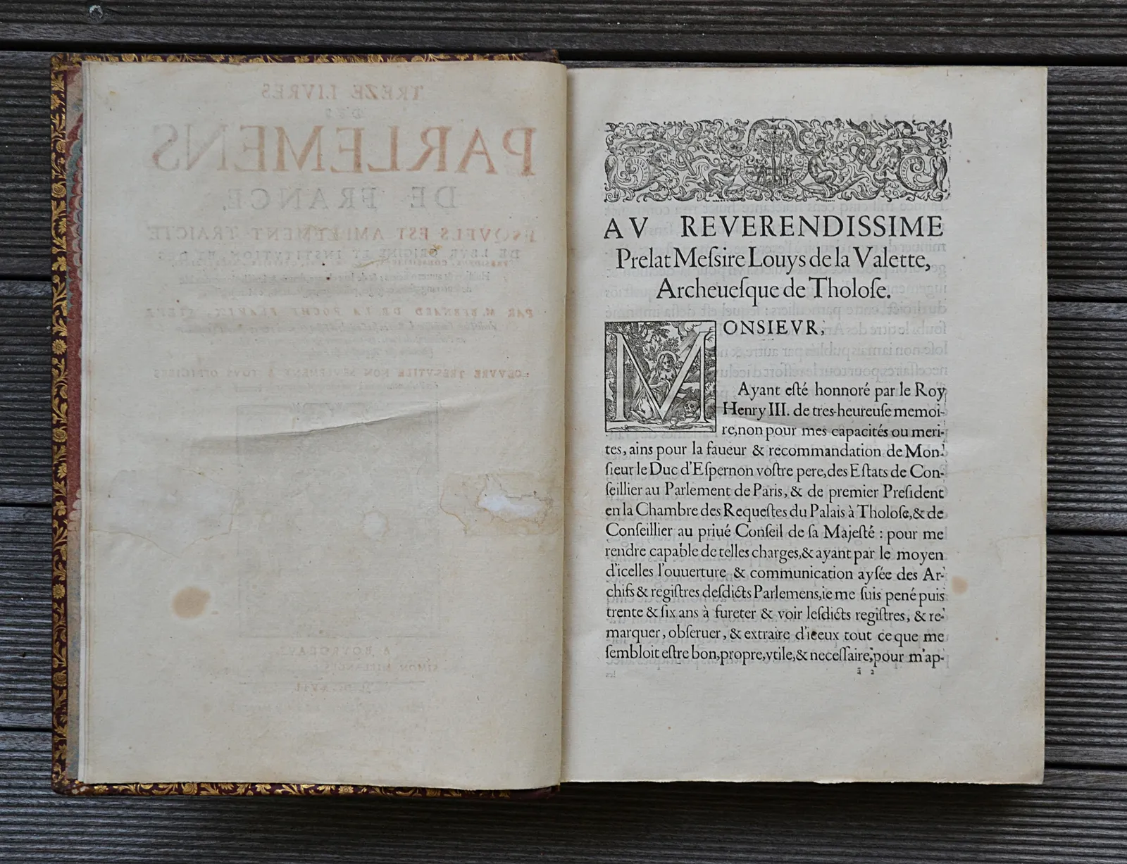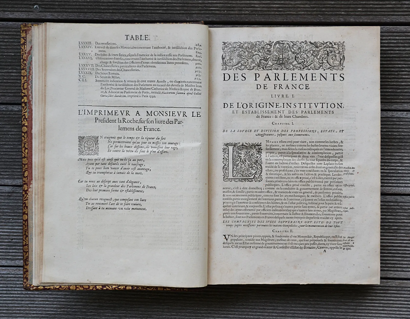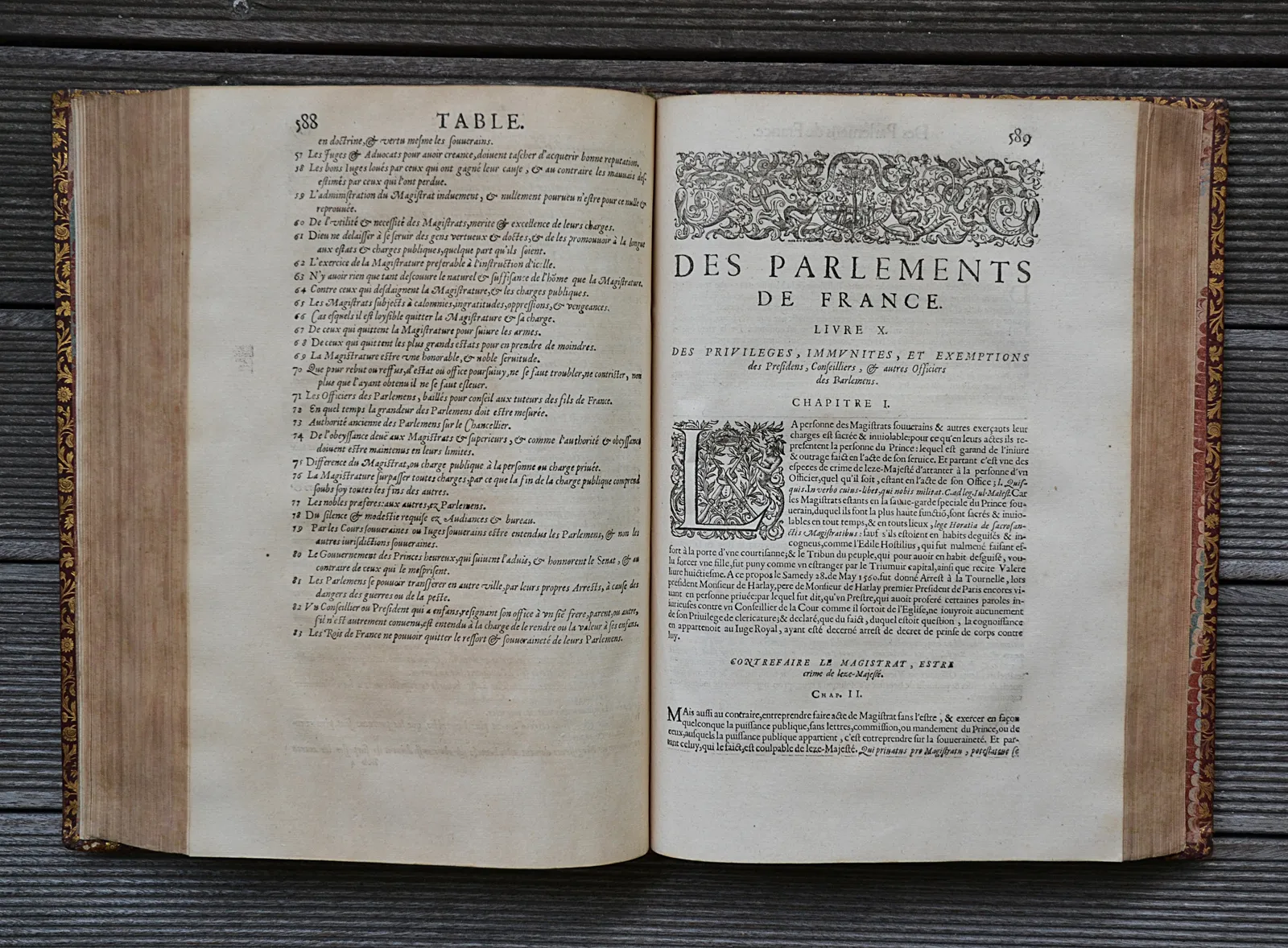 Treze livres des parlemens de France. Esquels est amplement traicté de leur origine et institution, et des présidens, conseillers, gens du Roy, greffiers, secrétaires, huissiers & autres officiers ; & de leur charge, devoir, & juridiction : ensemble de leurs rangs, séances, gages, privilèges, règlements & mercurialles. Œuvre très utile non seulement à tous officiers des parlemens, mais à tous autres magistrats de France.