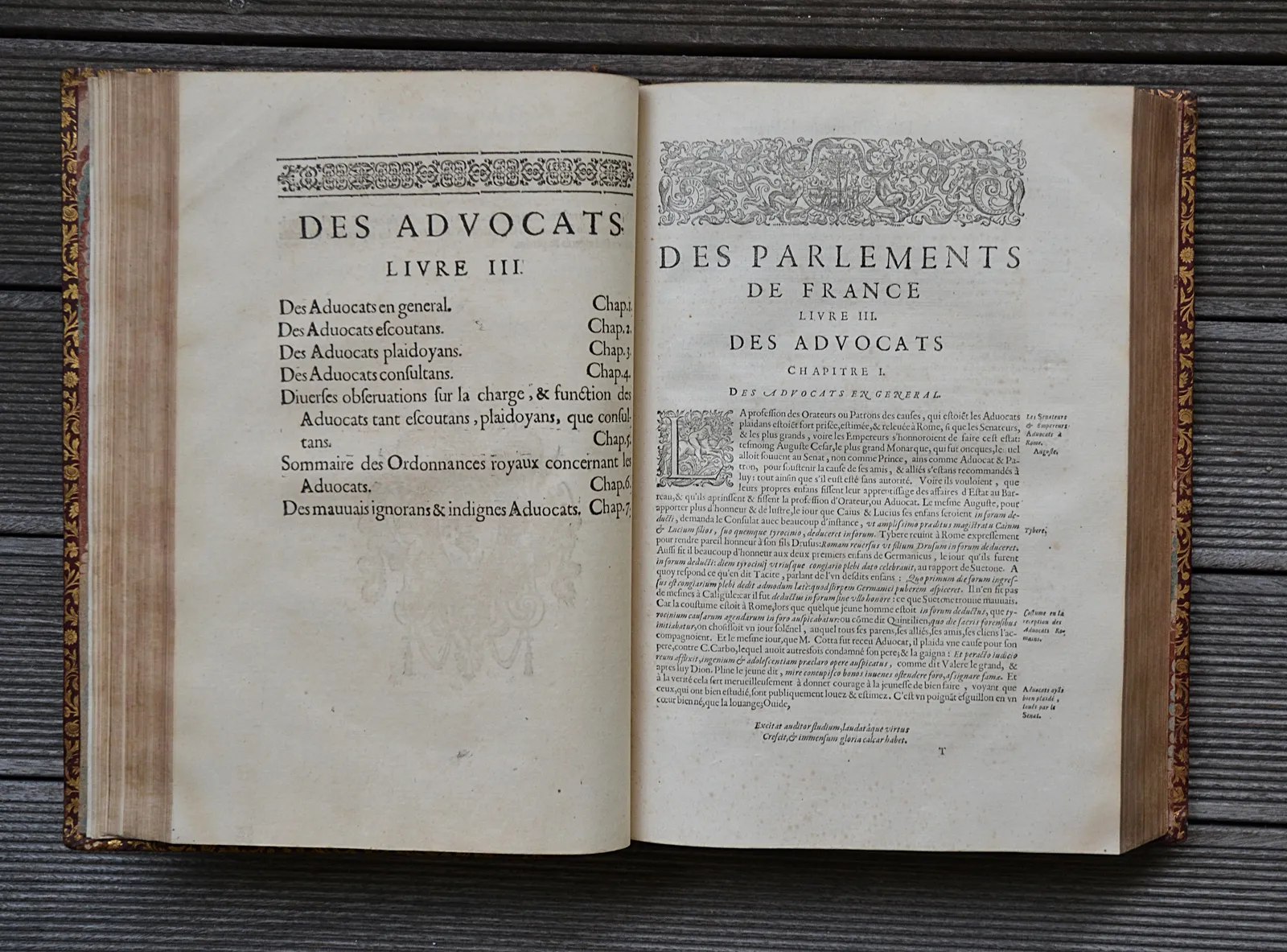 Esquels est amplement traicté de leur origine et institution, et des présidens, conseillers, gens du Roy, greffiers, secrétaires, huissiers & autres officiers ; & de leur charge, devoir, & juridiction : ensemble de leurs rangs, séances, gages, privilèges, règlements & mercurialles.