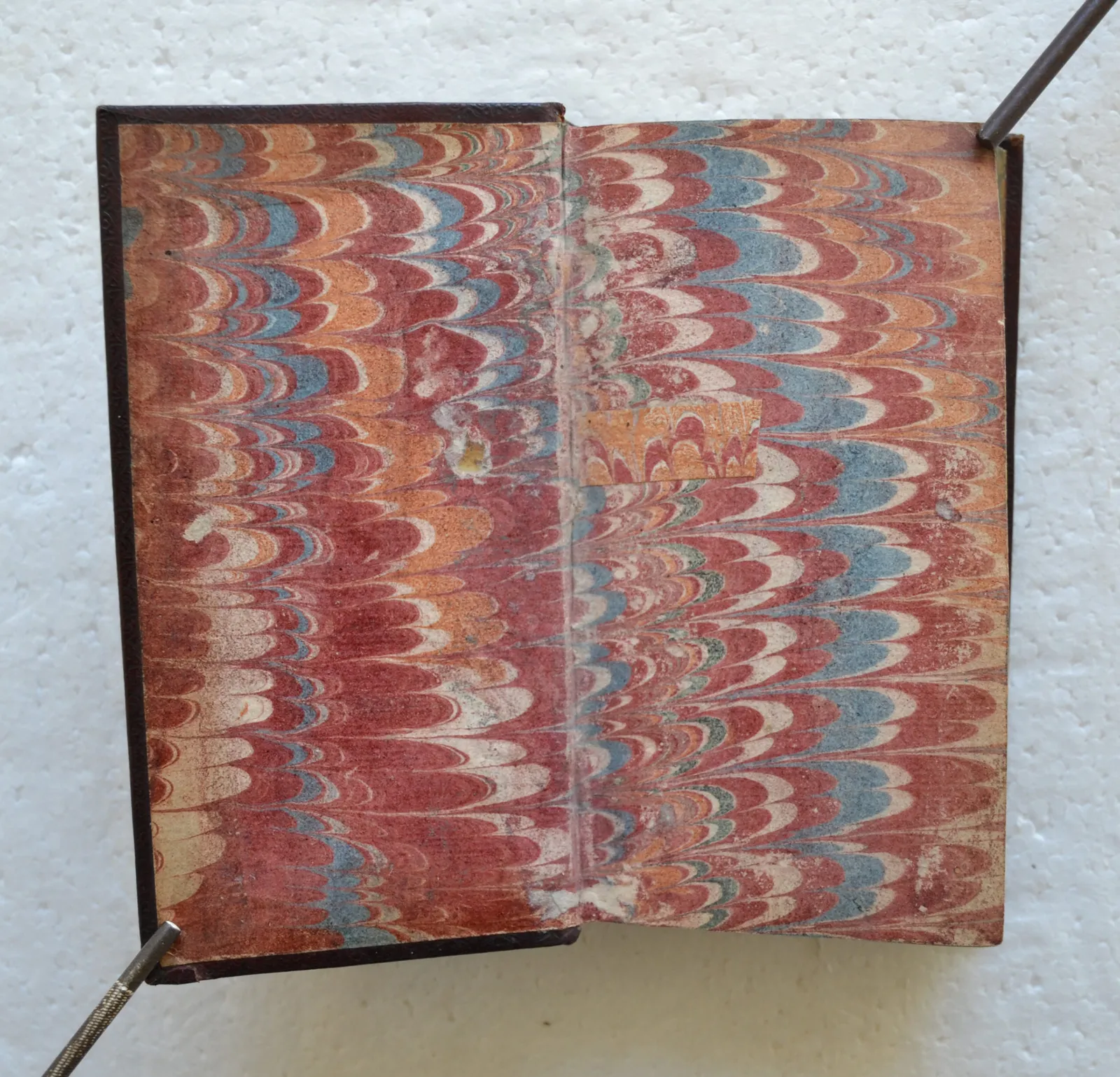 Quelques épidermures ; deux morceaux de papier marbré collés sur les gardes.