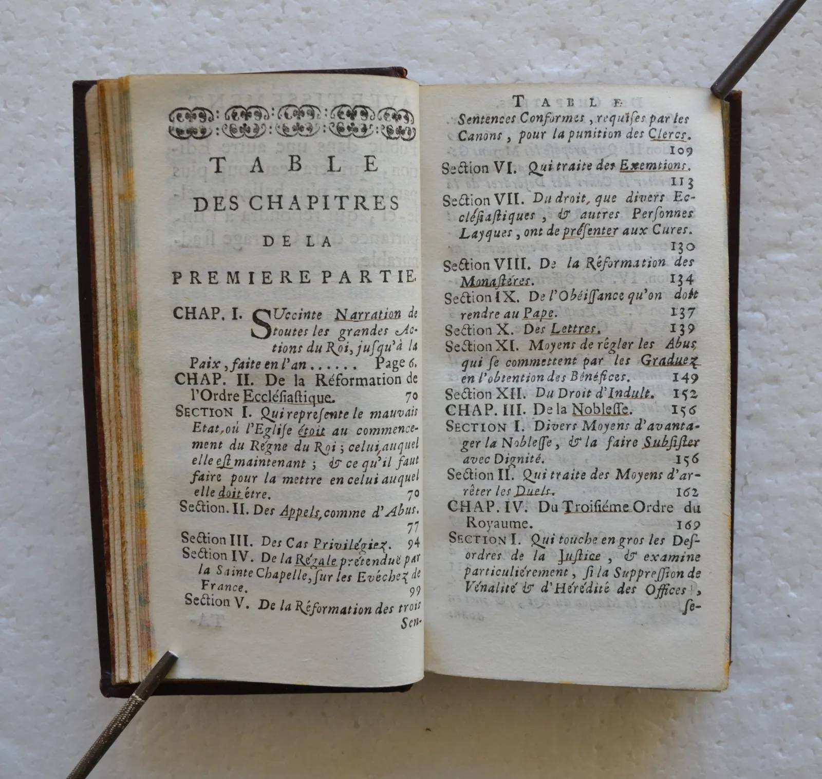 Édition originale de 1688 en maroquin vieux rouge du XVIIIe siècle, dos à nerfs orné de fleurons à froid, tranches dorées. Renseignements précis sur l'administration de la France sous Louis XIII.