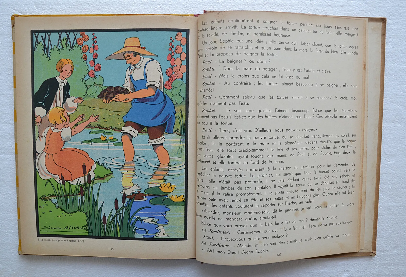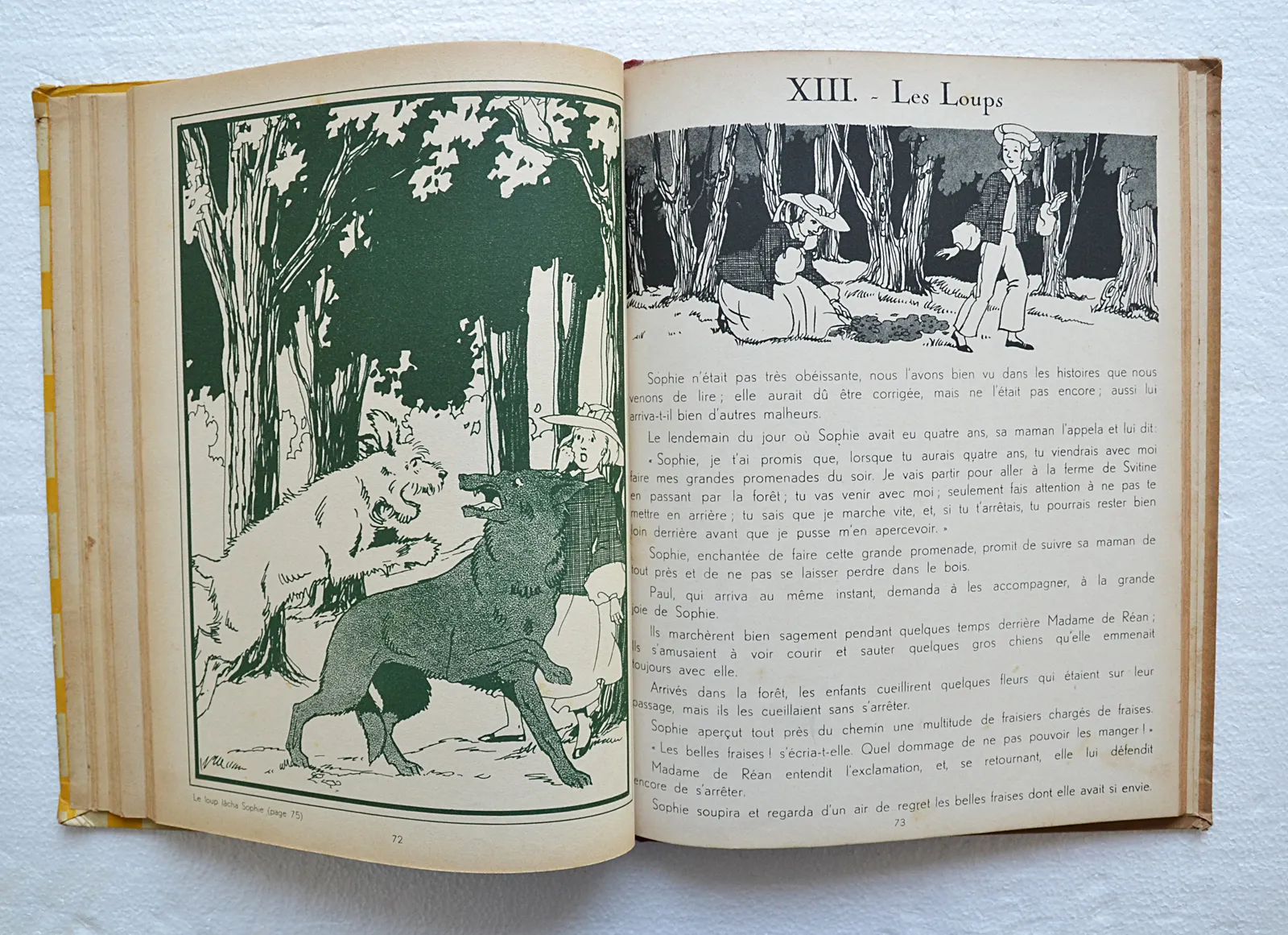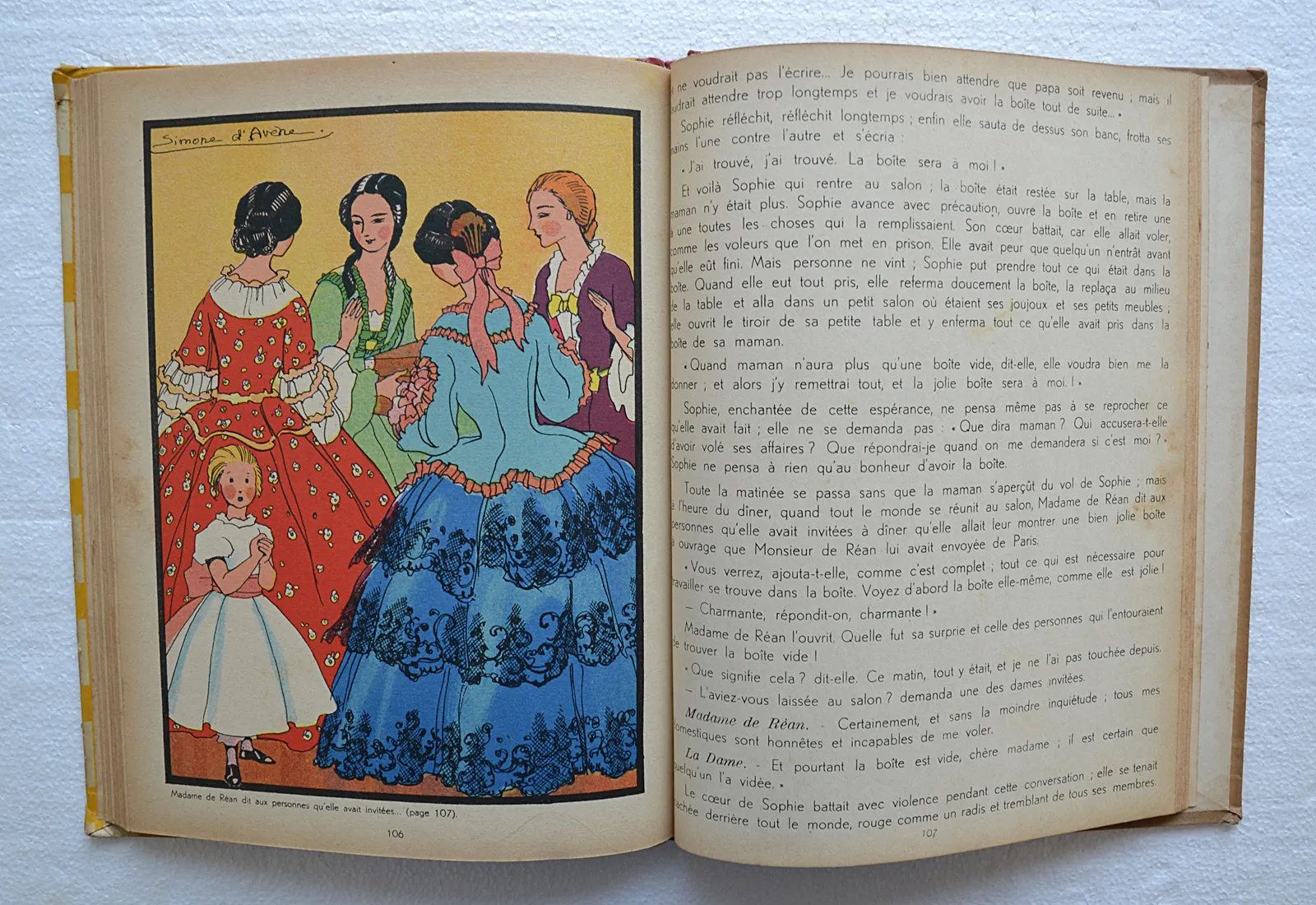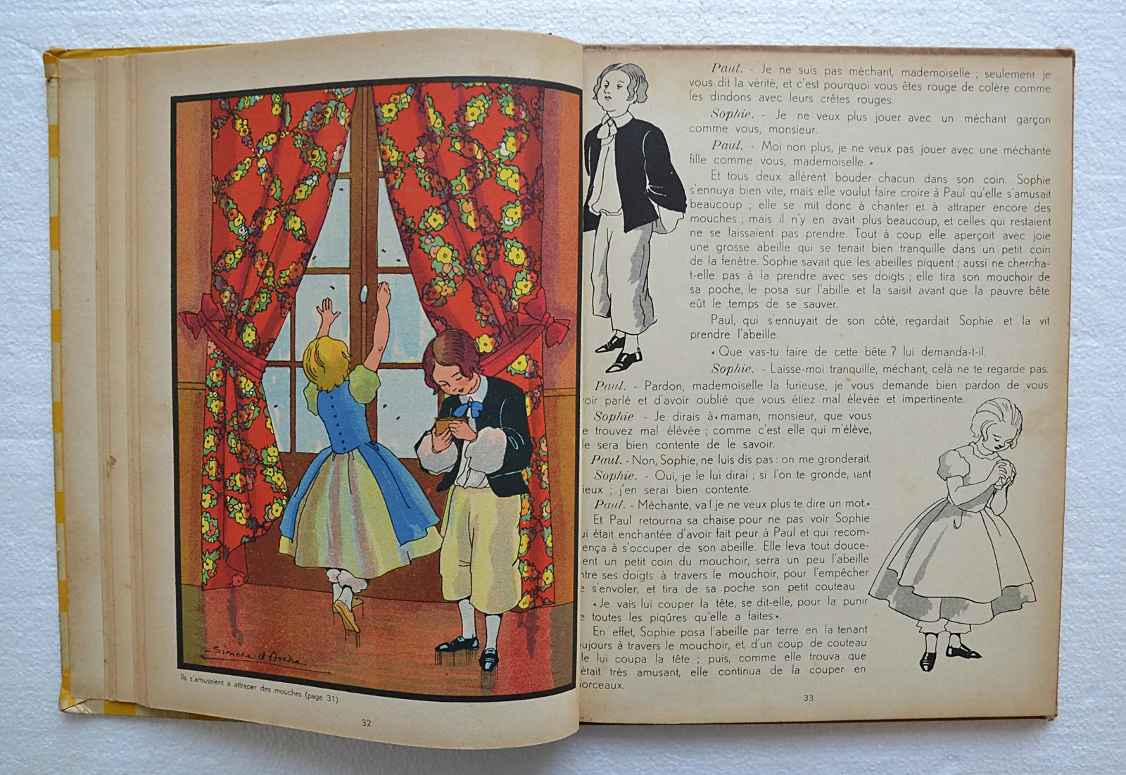 Cartonnage illustré de l'éditeur Gordinne (Liège, 1936), dessins en noir et en couleurs de Simone d'Avène. Format grand in-4.