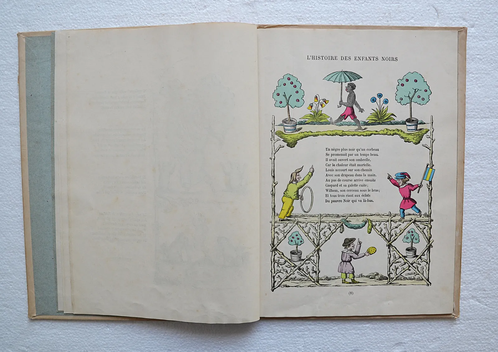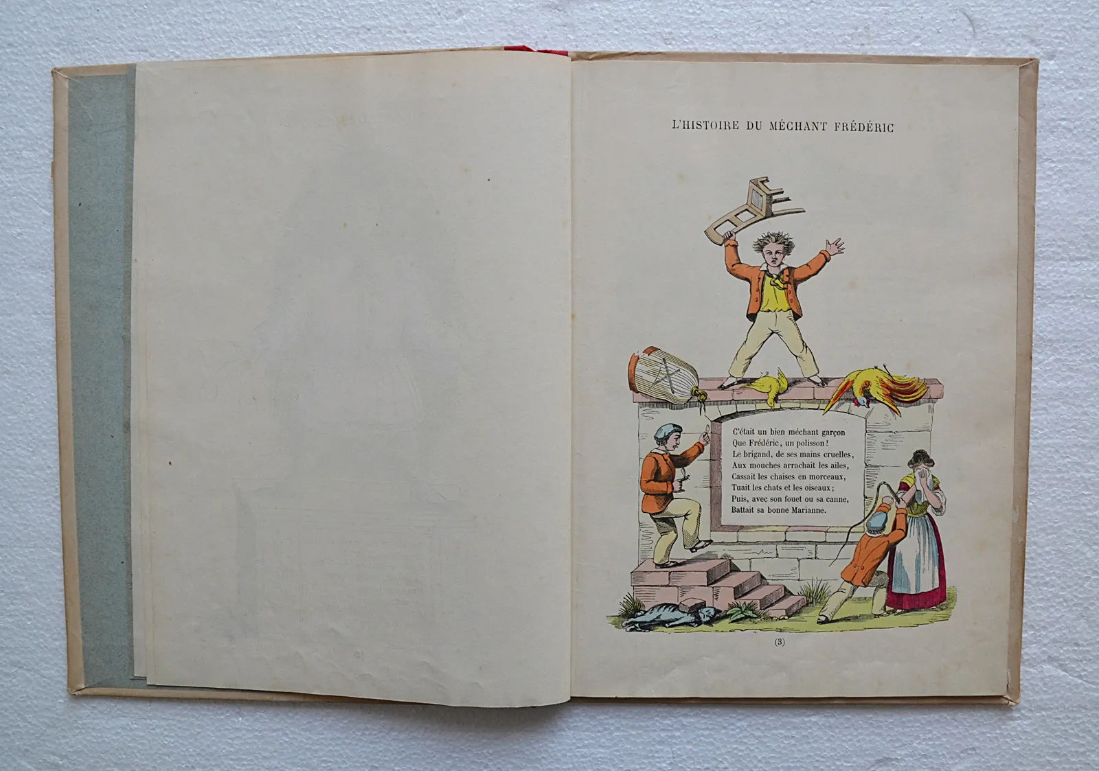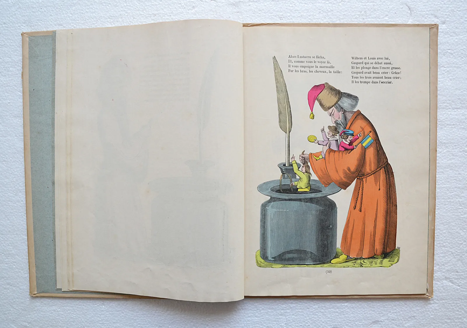 Cartonnage illustré de l'éditeur de ce célèbre recueil de leçons de morale pour enfants par le psychiatre Hoffmann, traduit de l'allemand, véritable classique de la littérature enfantine.