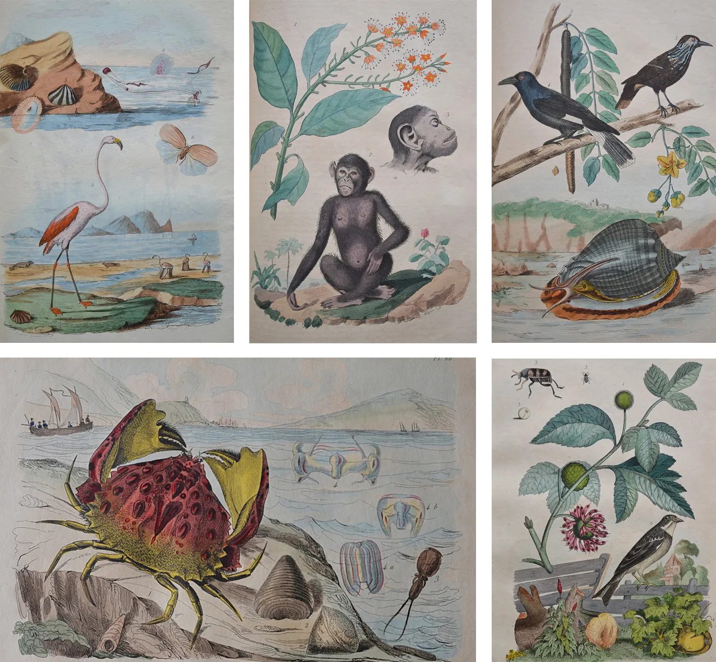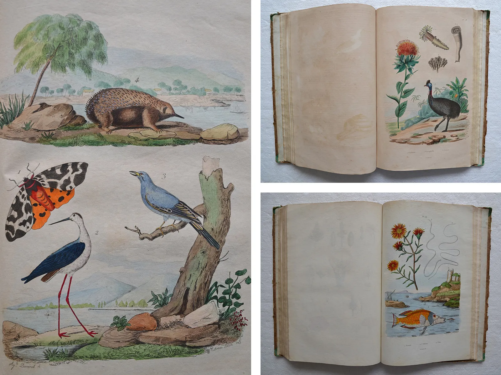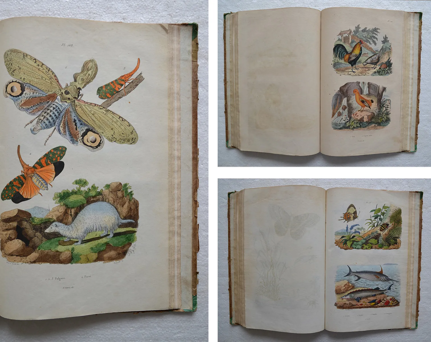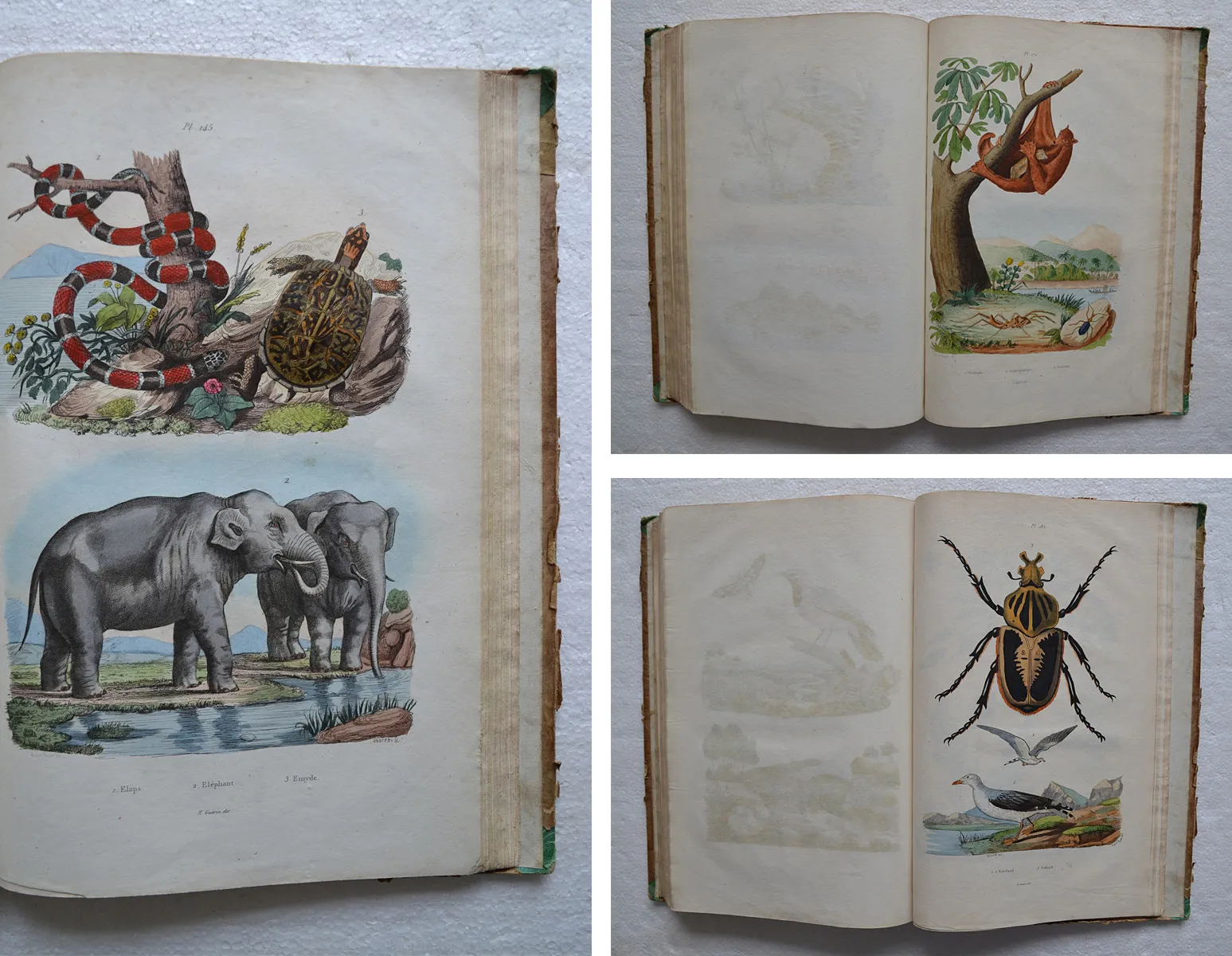 Premier volume de planches (1 à 199) du Dictionnaire pittoresque d’Histoire Naturelle publié sous la direction de Félix-Édouard Guérin, vendu par souscription, dont les livraisons s’échelonnent entre 1833 et 1839. L’ouvrage comprend neuf tomes renfermant 720 planches gravées sur acier à l’eau-forte (les deux autres volumes de planches sont actuellement en vente sur Ebay, cf. « afficher les autres autres objets du vendeur »).