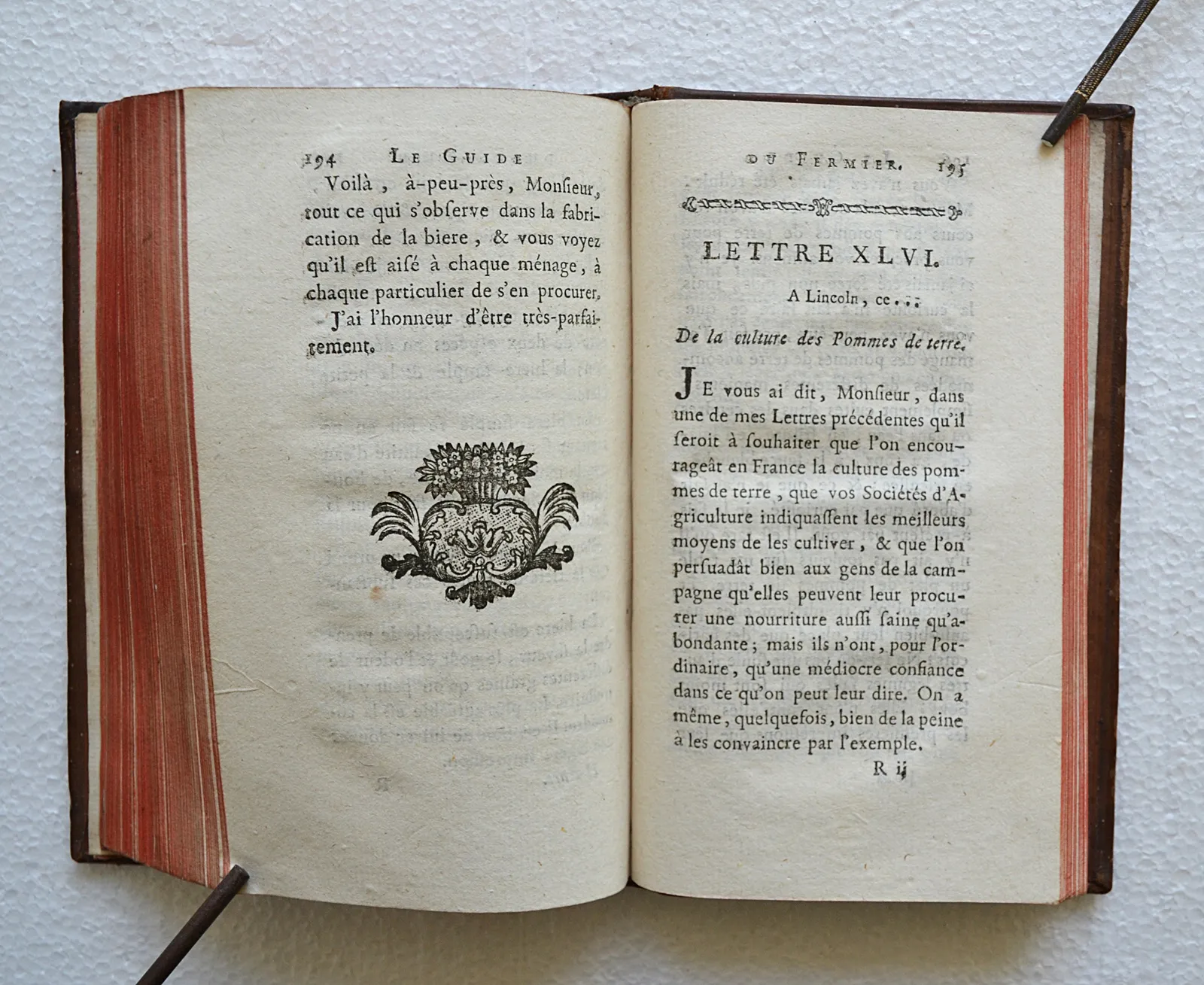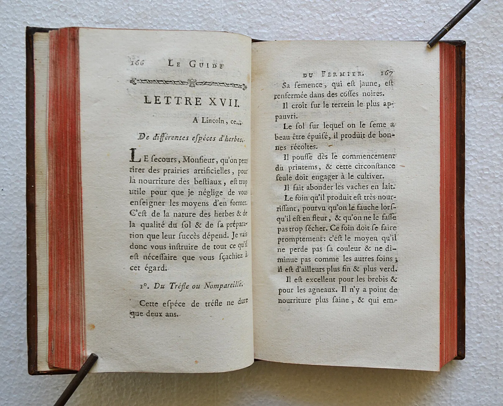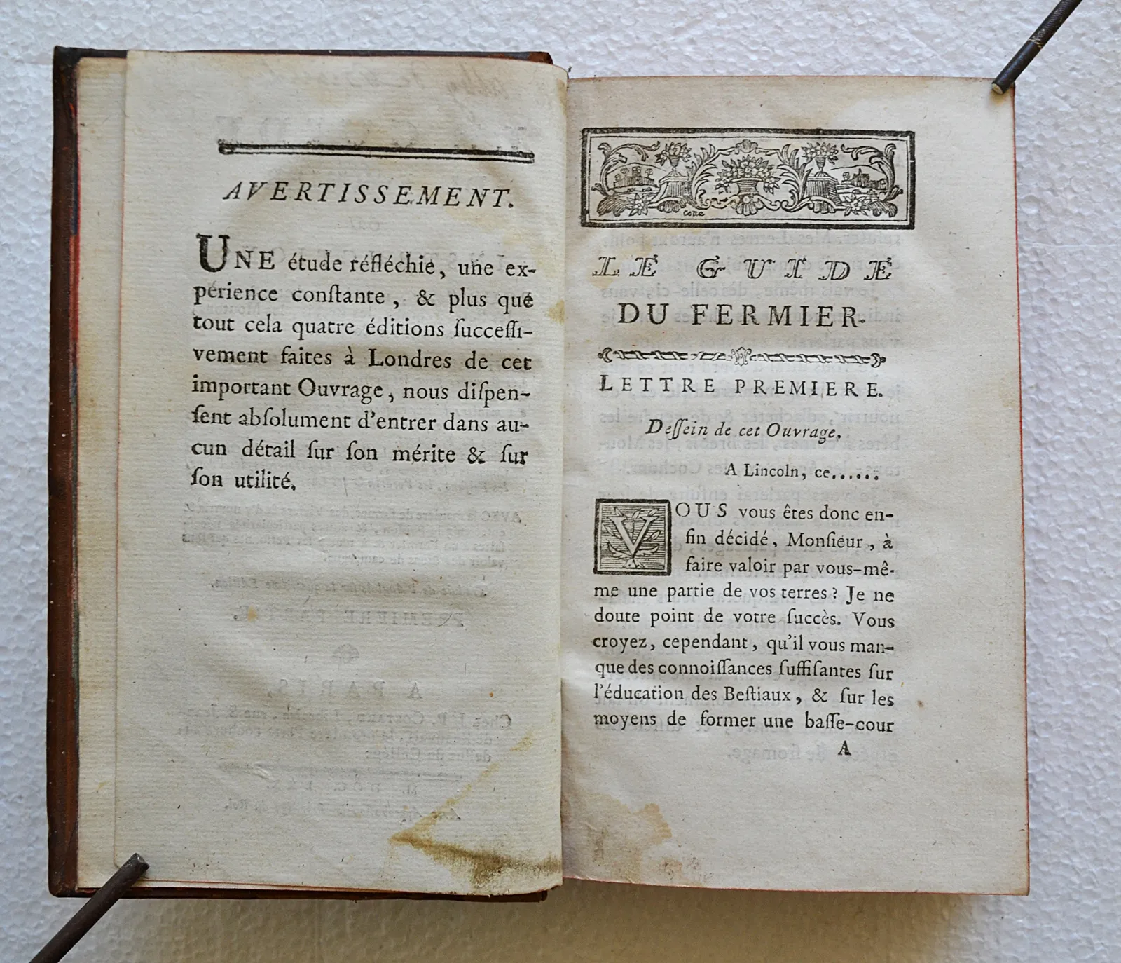 Bon exemplaire de cet important ouvrage, rédigé sous forme épistolaire, concernant principalement l’élevage des animaux de fermes anglais dans la deuxième moitié du XVIII° siècle.