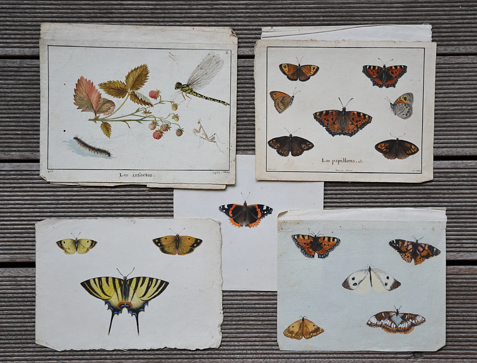 Deux planches signées P. Chatry, dont l’une avec l’inscription : « Les papillons – d’après nature », et une date au crayon (1854).