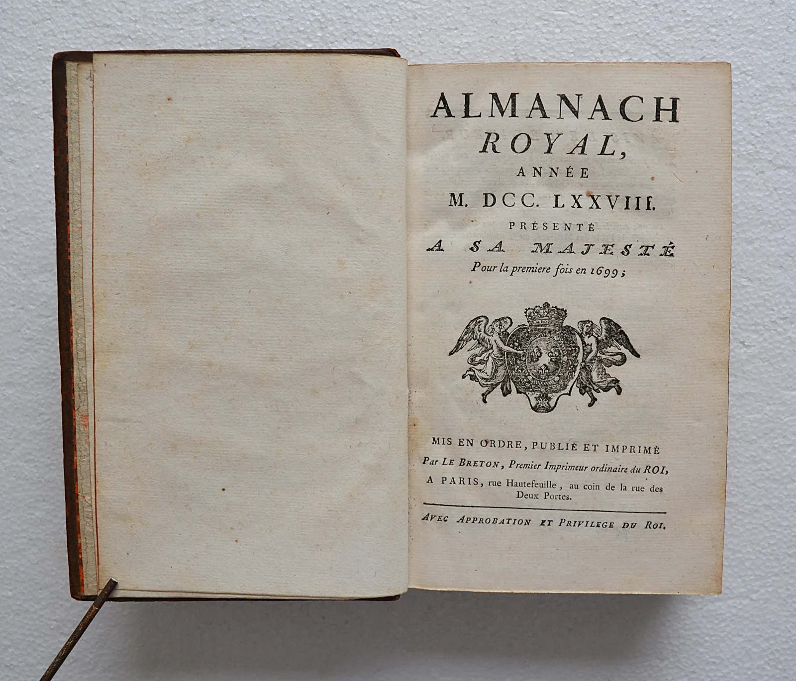 ALMANACH ROYAL, année M. DCC. LXXVIII. Présenté à Sa Majesté pour la première fois en 1699.