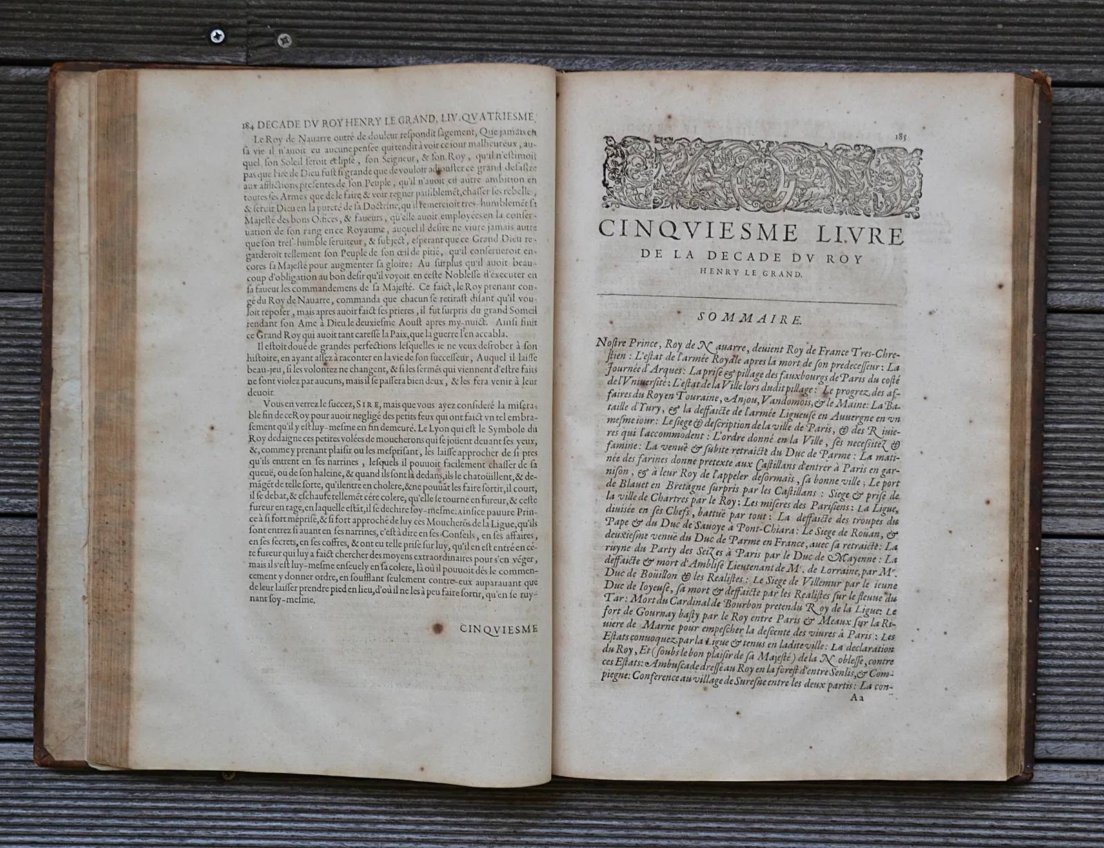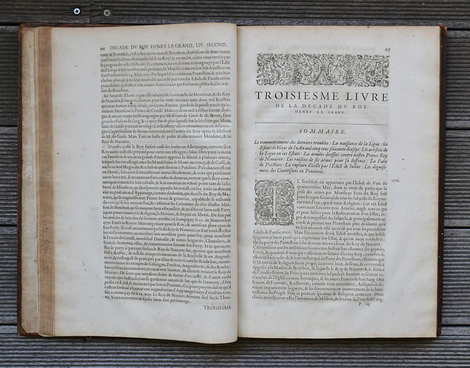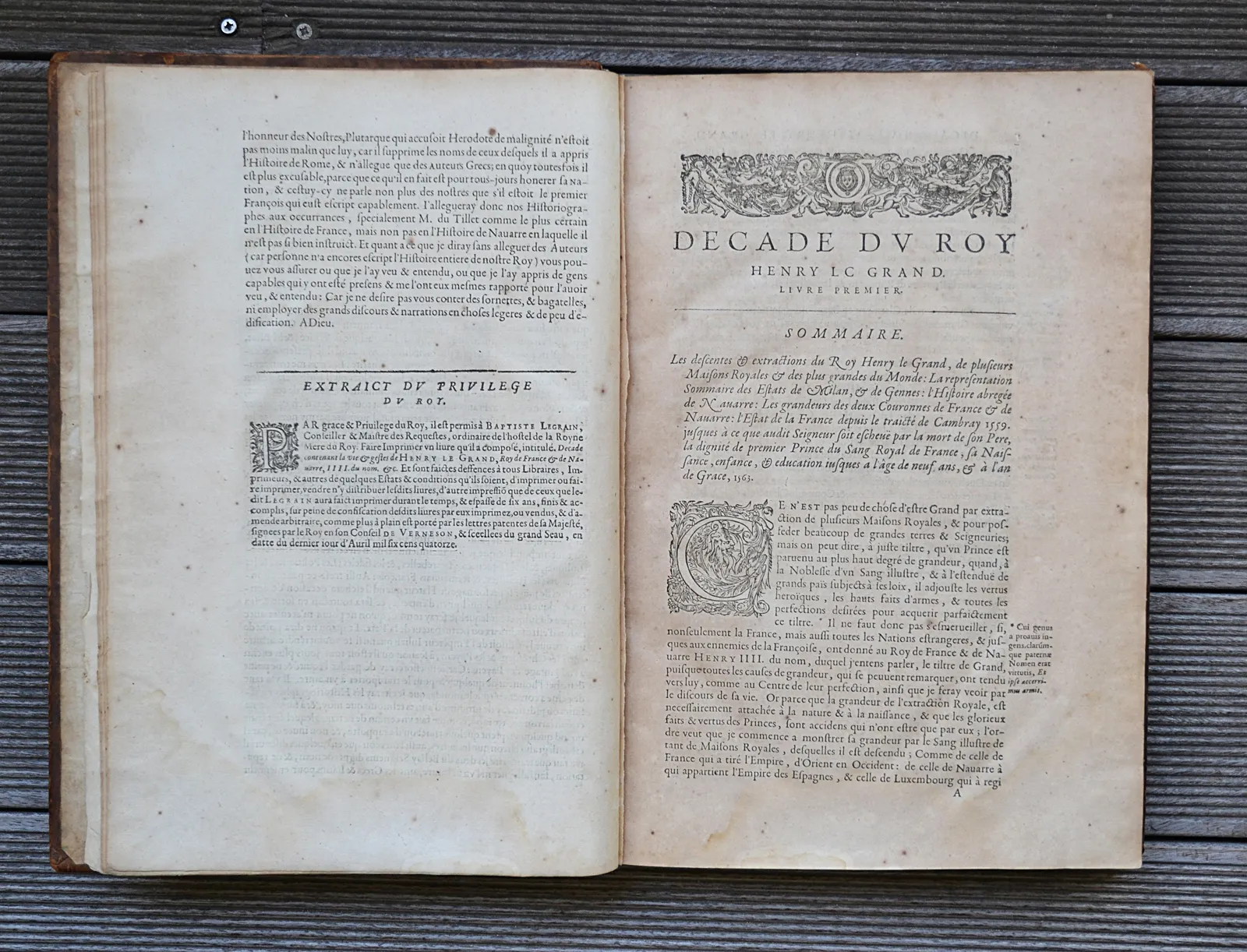 Décade contenant la vie et gestes de Henry le Grand, Roy de France et Navarre IIII° du Nom. En laquelle est représenté l’Estat de la France depuis le dernier traicté de Cambray 1559. Jusques à la mort dudict Seigneur, icelle comprise, avec ce qui c’est faict & passé incontinent après icelle : les grandeurs des deux couronnes de France & de Navarre & les droicts dudit Seigneur sur plusieurs grandes terres & seigneuries.