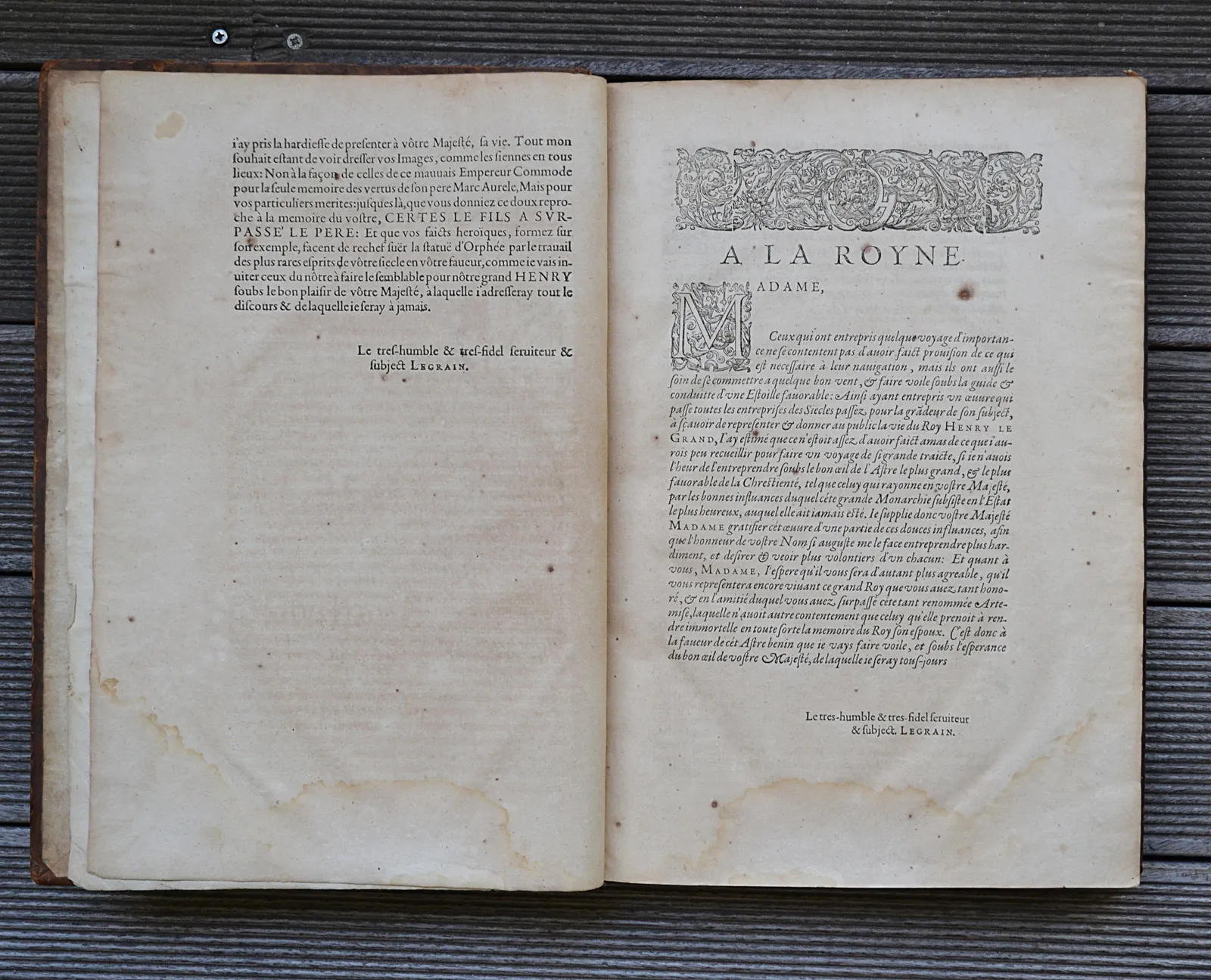 « Jean-Baptiste Legrain, seigneur de Guyencourt et de la Laye est un historien français (1565-1642). Il appartenait à une famille noble des Pays-Bas et n’avait que deux ans lorsqu’il perdit son père, qui était conseiller au Châtelet. Ses études terminées, il fréquenta la cour, fut attaché à la personne de Henri IV, qui le choisit pour conseiller, et maître des requêtes ordinaire de l’hôtel de la reine Marie de Médicis. Il se démit de ses emplois pour écrire l’histoire de son temps ; mais sa franchise lui attira des tribulations. Il avait tant d’éloignement pour les jésuites qu’il défendit, par son testament, à ses descendants de leur confier l’éducation de leurs enfants (…) » (Hoefer – T30 – 418).