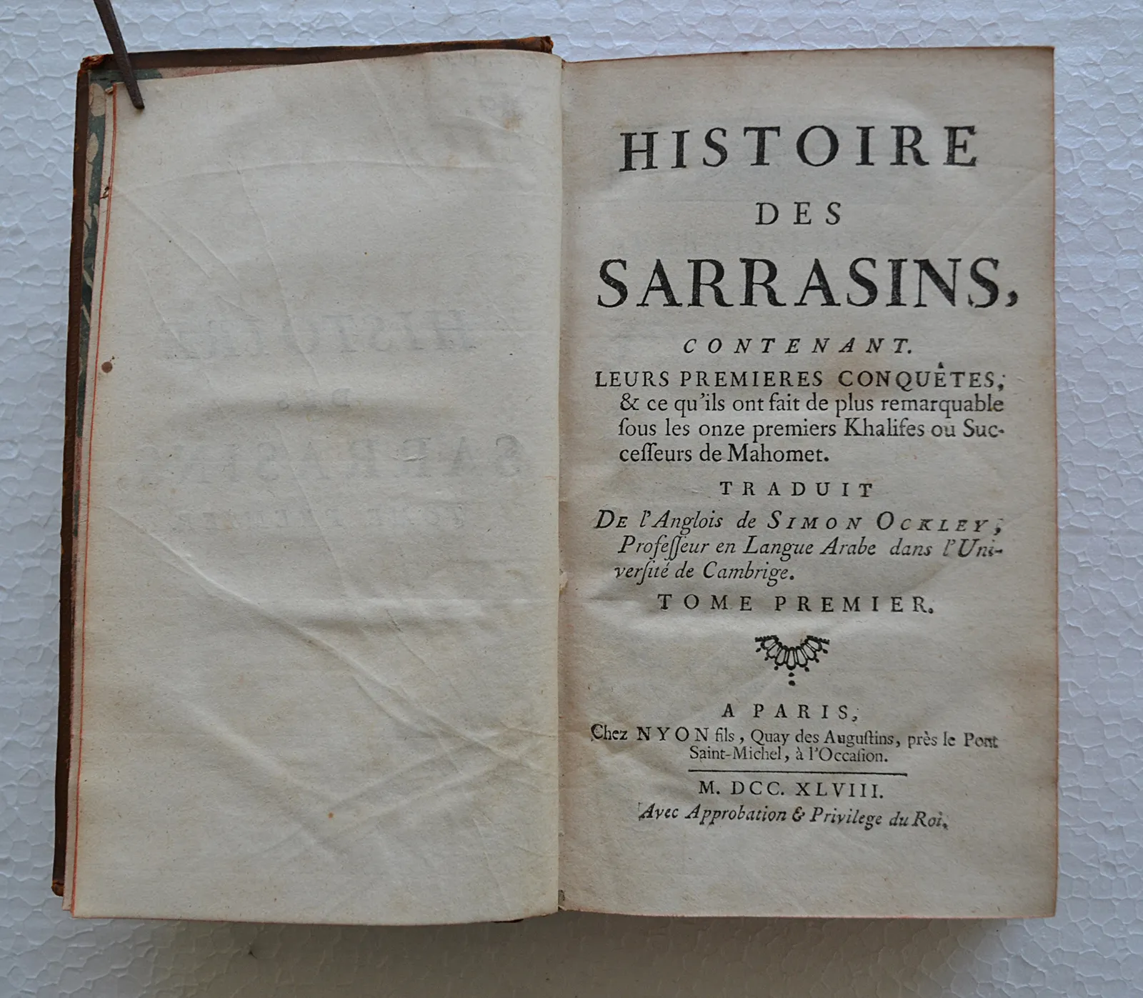 Histoire des sarrasins, contenant leurs premières conquêtes, & ce qu’ils ont fait de plus remarquable sous les onze premiers khalifes ou successeurs de Mahomet. Traduit de l’anglais [par Auguste-François Jault] de Simon Ockley, professeur en langue arabe dans l’université de Cambridge.