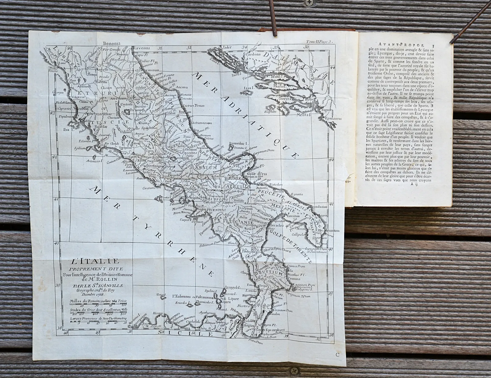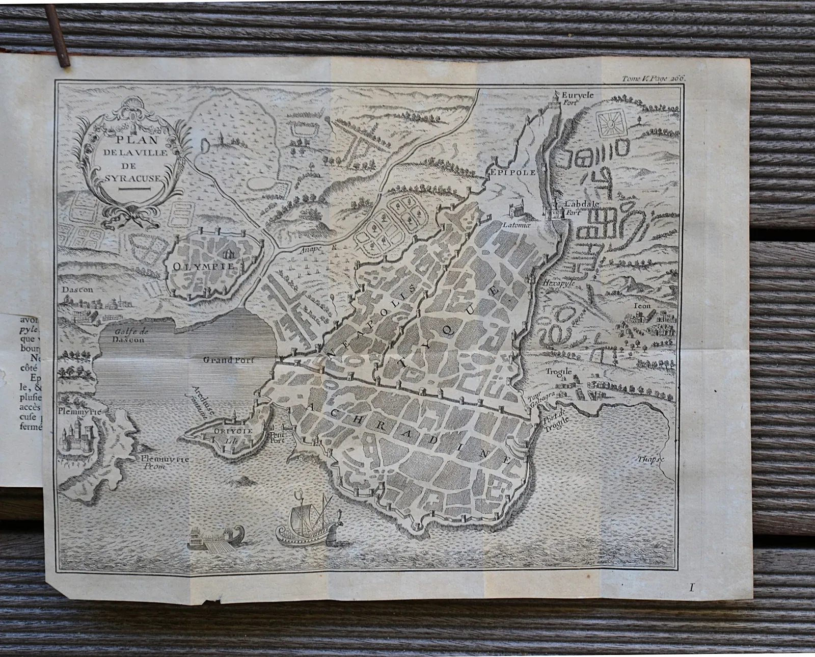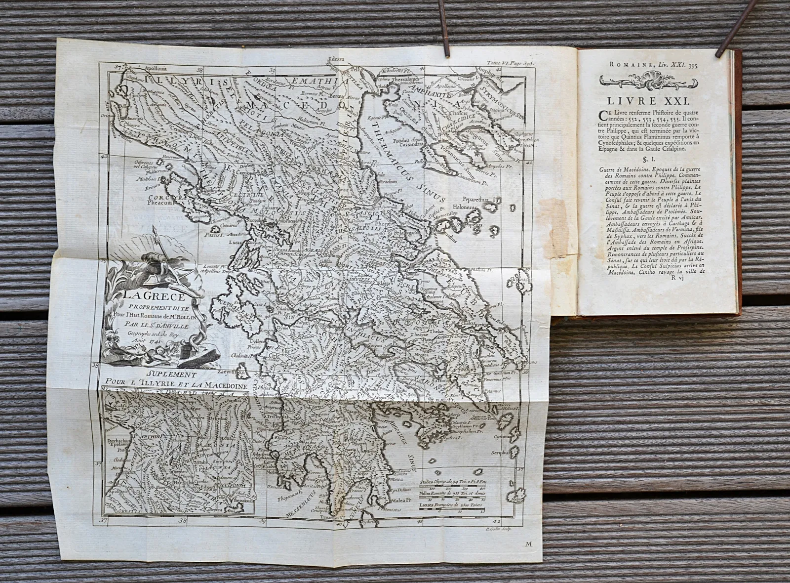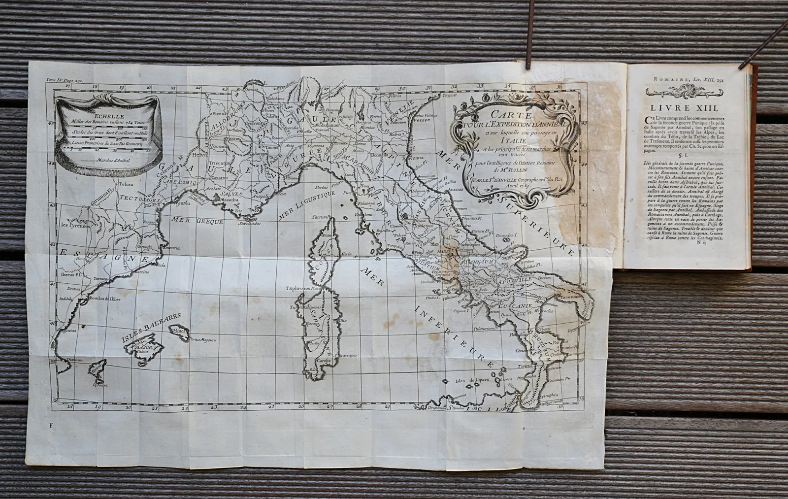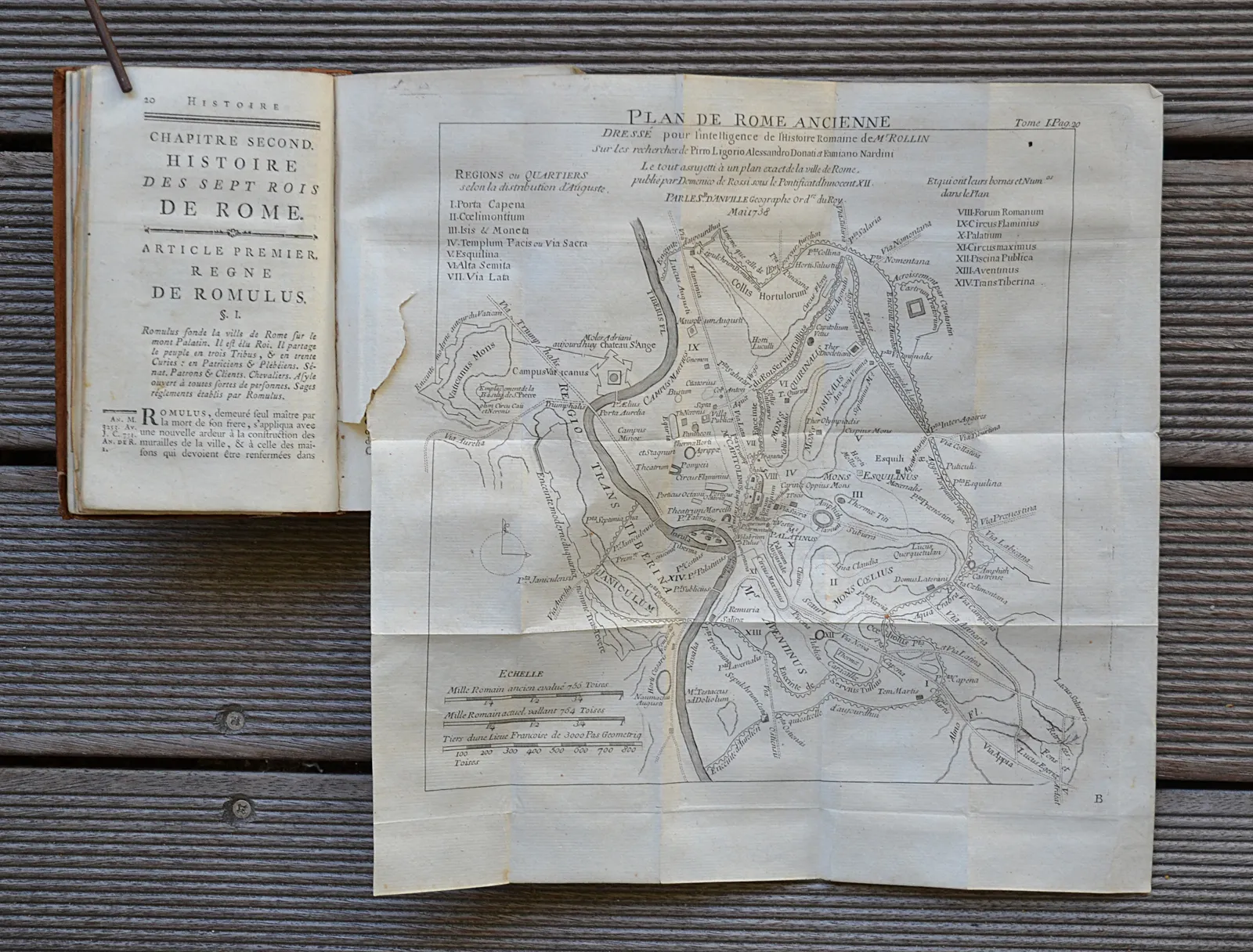L’ouvrage est illustré d’un portrait-frontispice, de 11 cartes dépliantes, d’un plan de Rome et d’une planche repliée (plan du combat naval d’Ecnome).