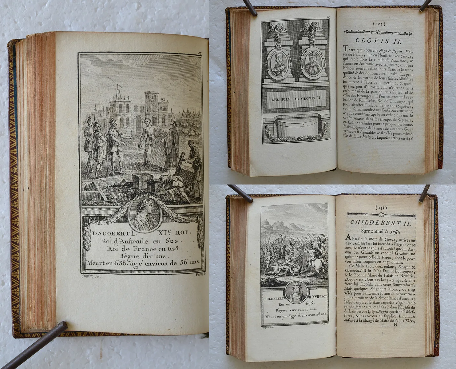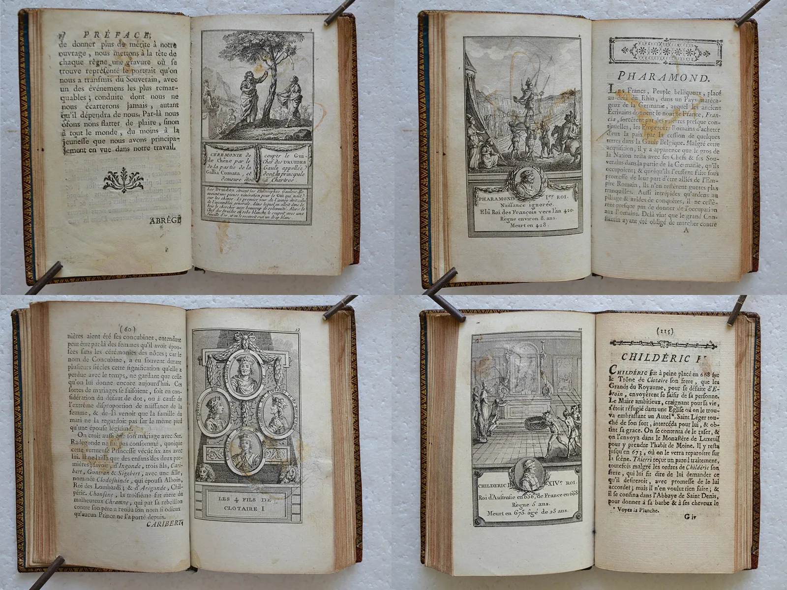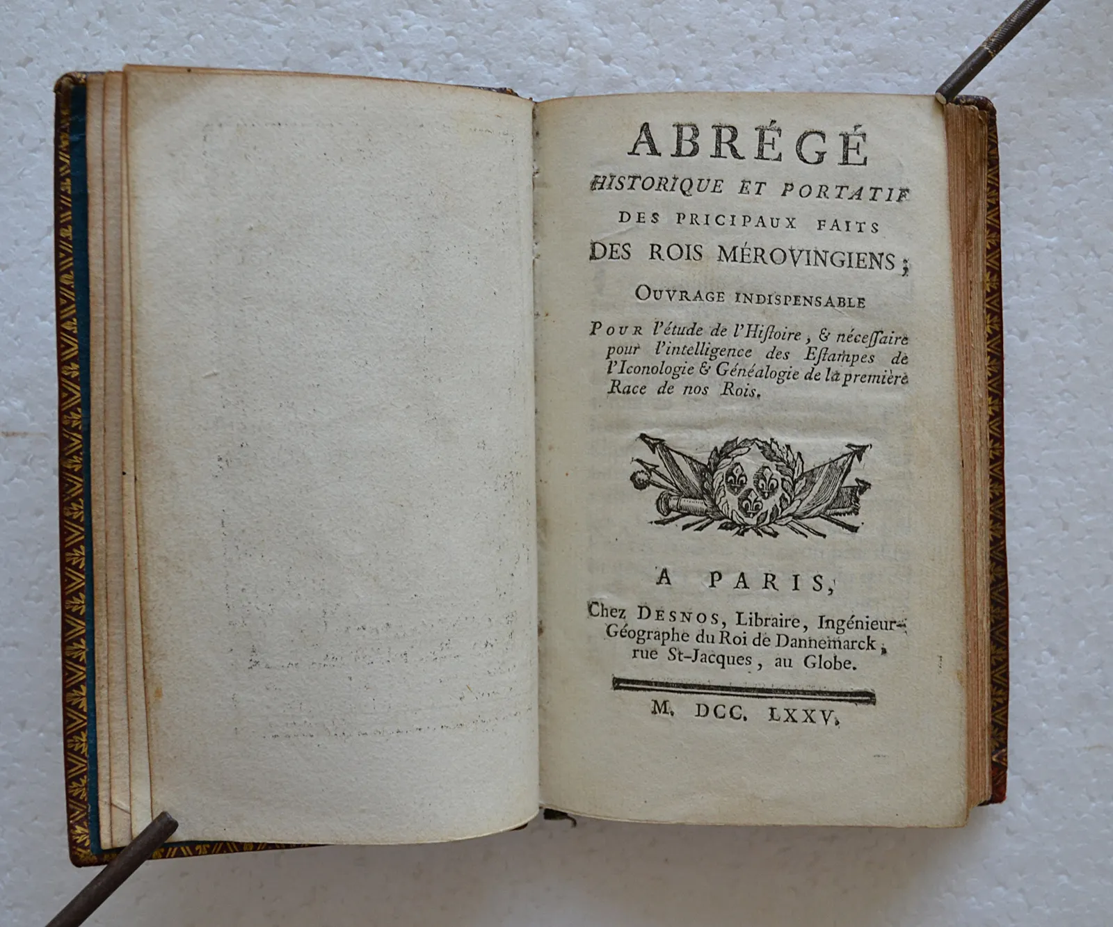 Abrégé historique et portatif des principaux faits des rois mérovingiens ; ouvrage indispensable pour l’étude de l’histoire, & nécessaire pour l’intelligence des estampes de l’iconologie & généalogie de la première race de nos rois.