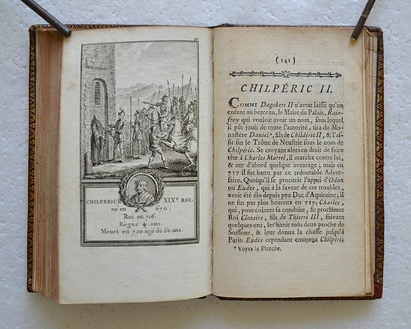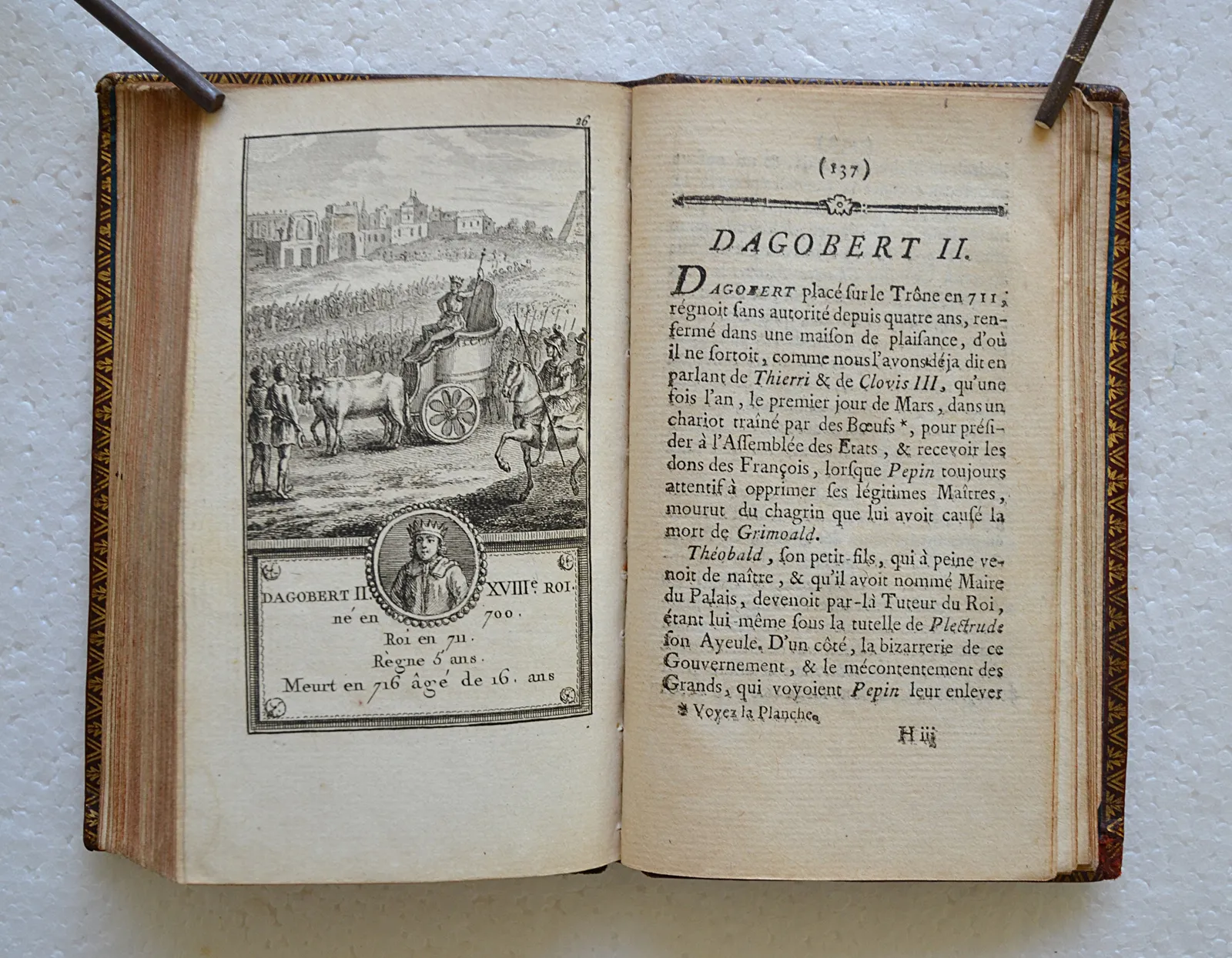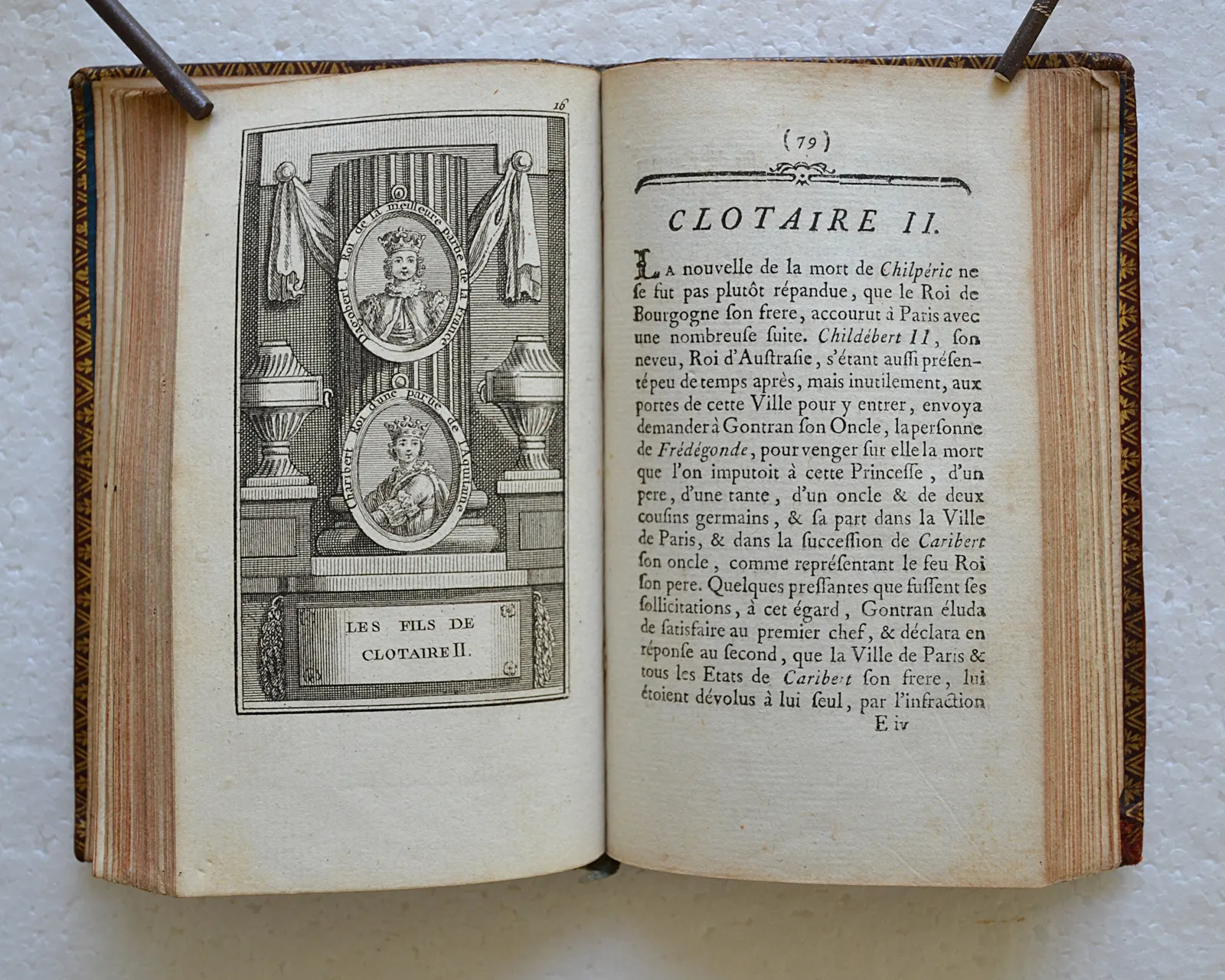 Abrégé historique et portatif des principaux faits des rois mérovingiens ; ouvrage indispensable pour l’étude de l’histoire, & nécessaire pour l’intelligence des estampes de l’iconologie & généalogie de la première race de nos rois.