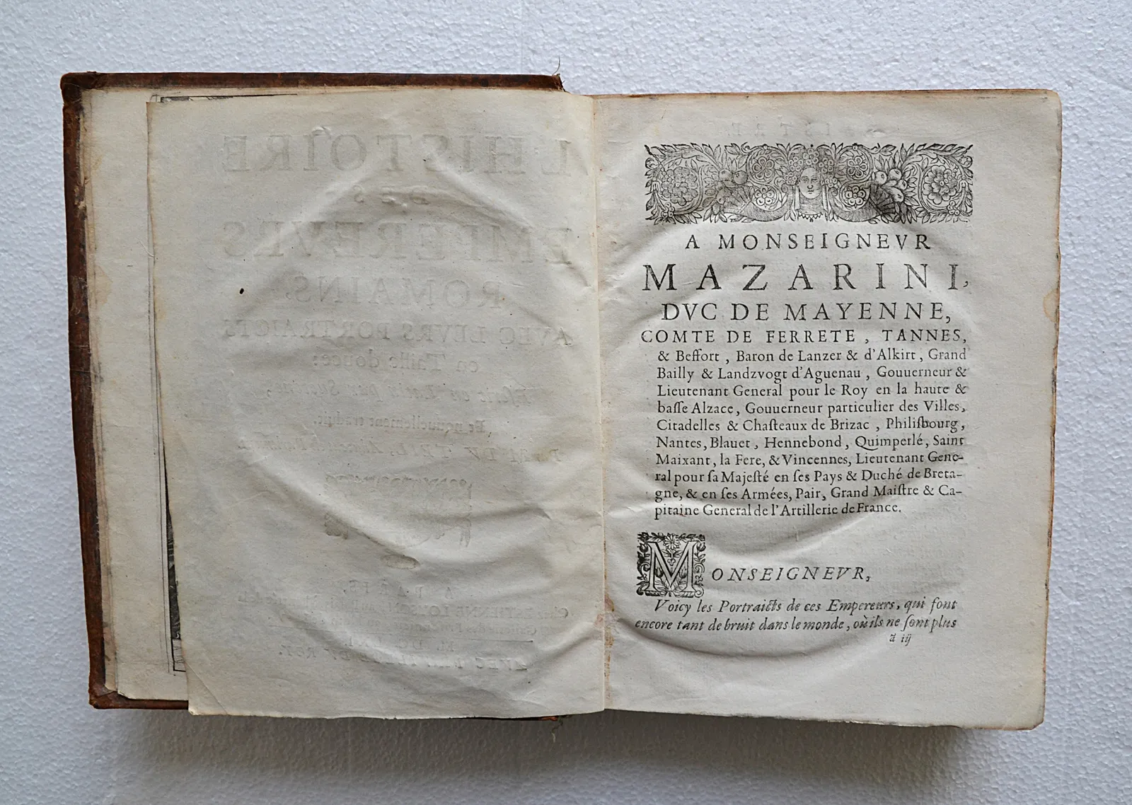 Très rare édition originale de 1661 de la traduction des Vies des douze Césars, illustrée d'un frontispice allégorique et de douze magnifiques portraits gravés en taille-douce. Intérieur en très bon état.