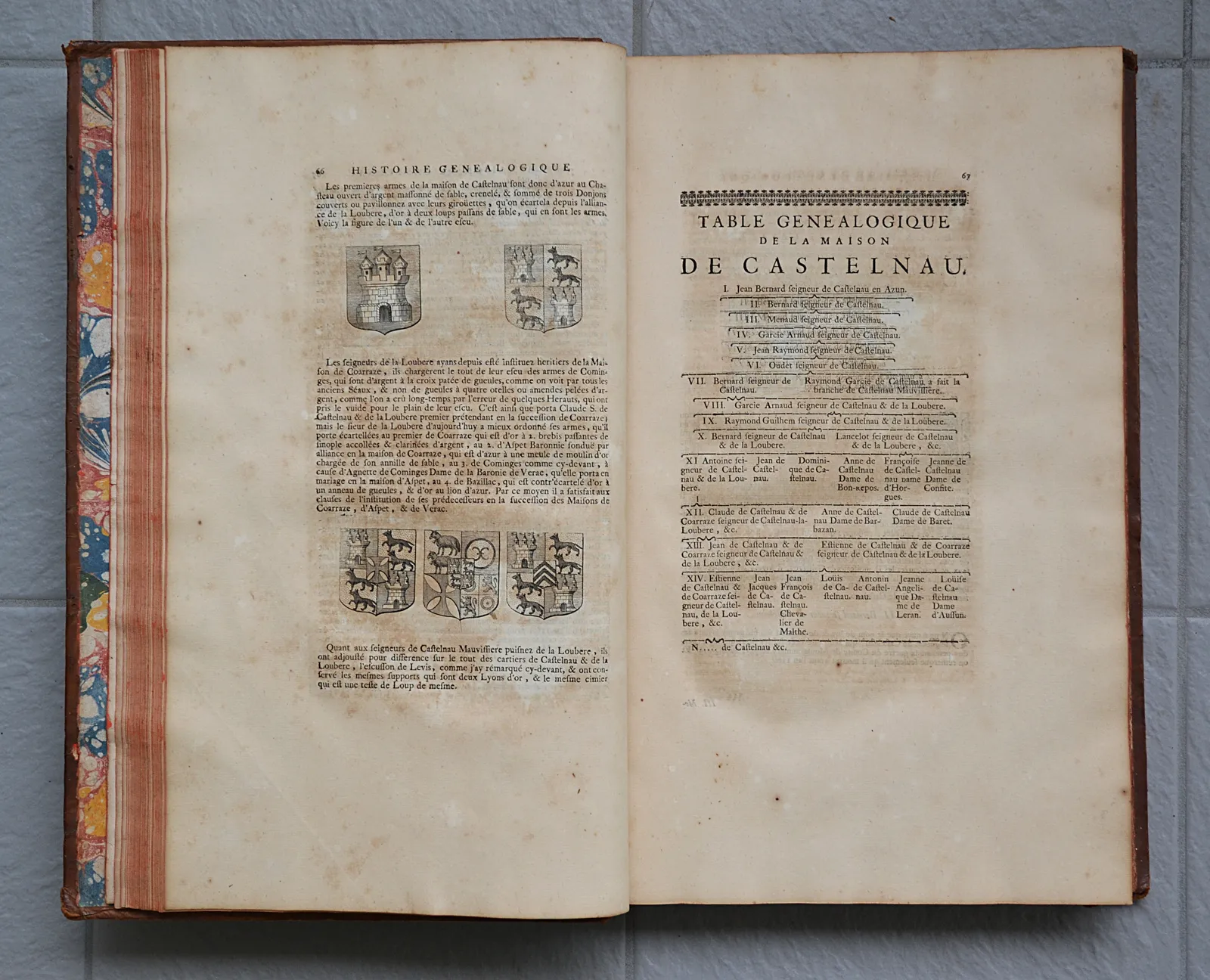 Avec des éloges des rois, reines, princes & autres personnes illustres de l’une & de l’autre religion sous ces trois règnes, l’histoire généalogique de la maison de Castelnau, et les généalogies de plusieurs maisons illustres alliées à celle de Castelnau.