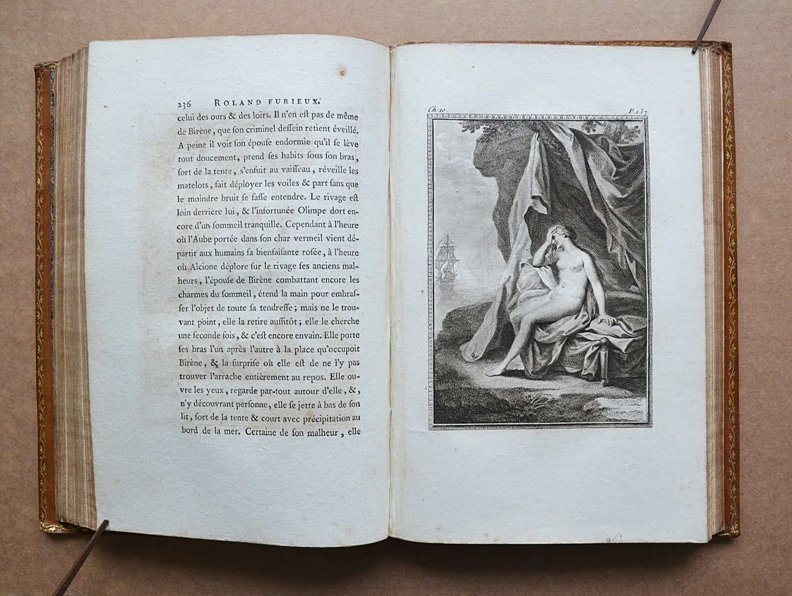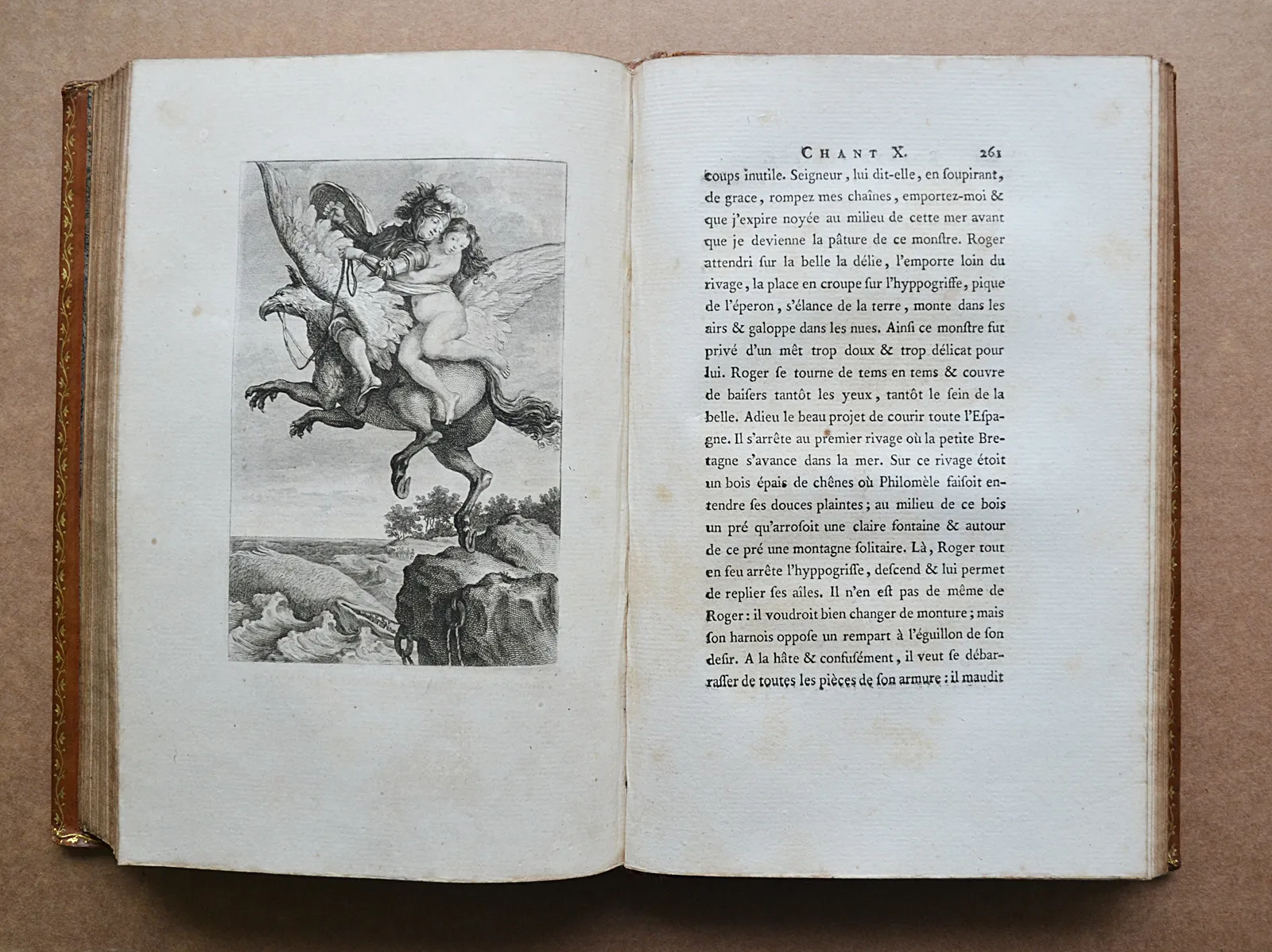 Reliure décorative d'époque ornée de têtes de Roland et d'Angélique dorées, portrait et 92 figures hors-texte en épreuve avant la lettre.
