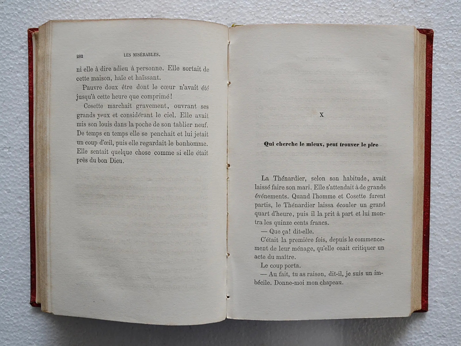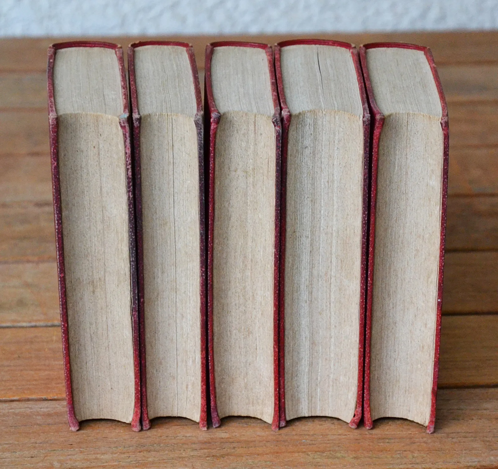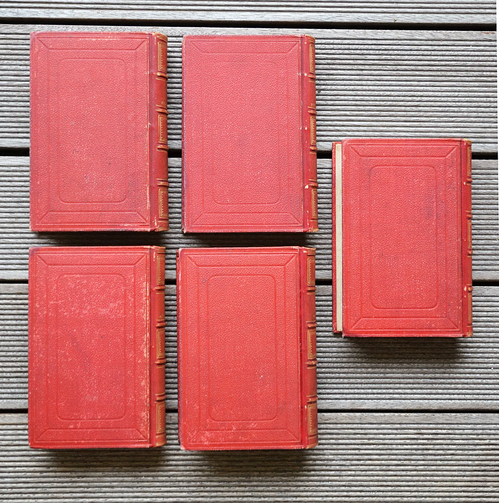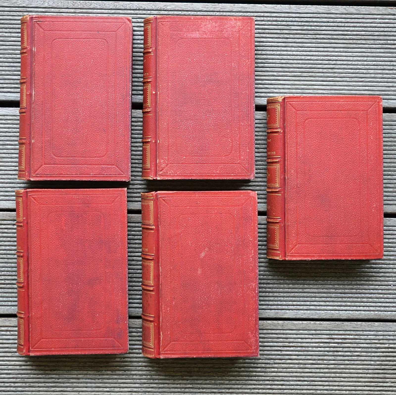 Dix tomes en cinq volumes in-12 (12,5 x 18,2 cm.) de 339pp. / 371pp. + 336pp. / 302pp. + 290pp. / 282pp. + 419pp. / 388pp. + 343pp. / 330pp. ; demi-chagrin rouge, dos à nerfs ornés, plats en percaline avec des encadrements de filets à froid (reliure de l’époque).