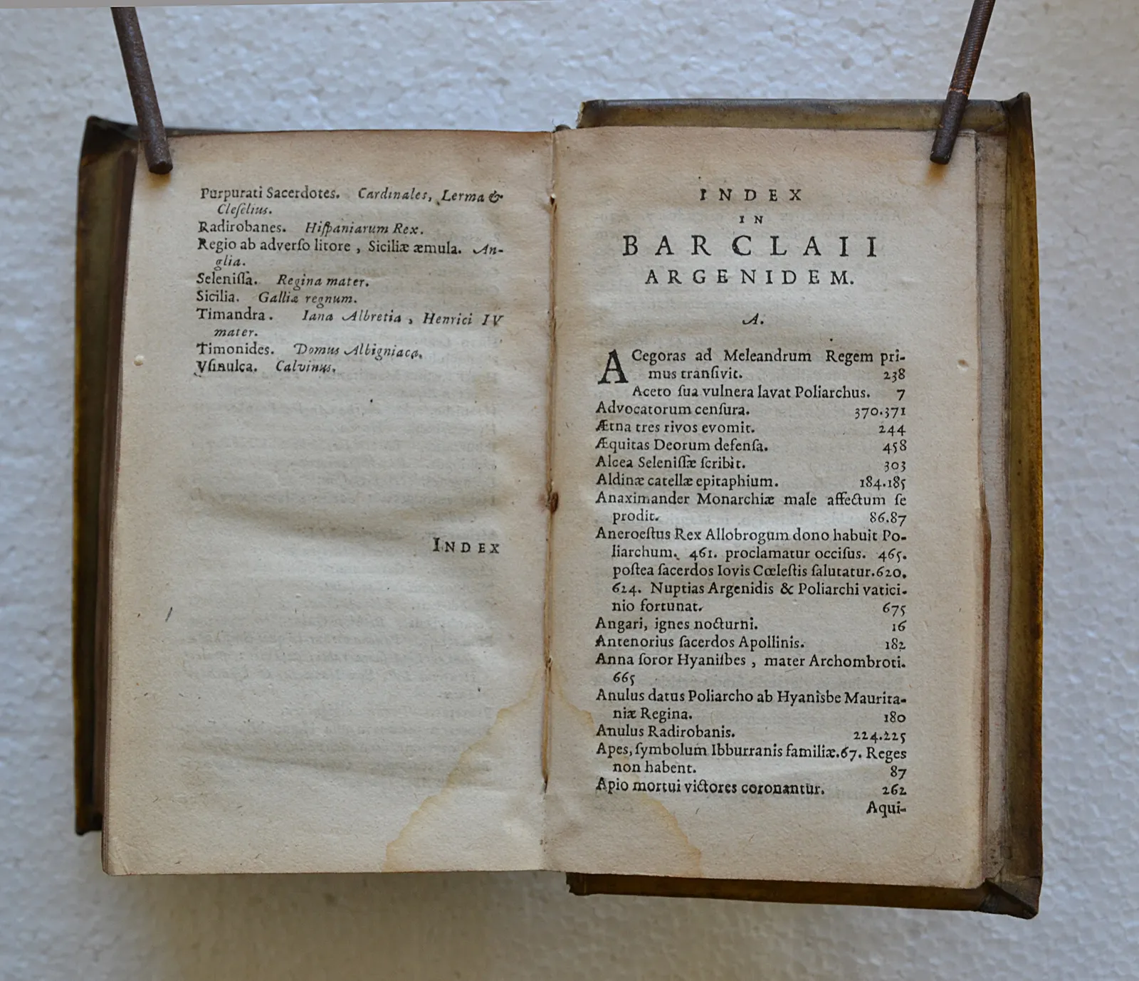 Vélin ivoire rigide d'origine à rabats, impression elzévirienne de Leyde de 1630, roman allégorique en latin estimé par Richelieu, avec clef des personnages.