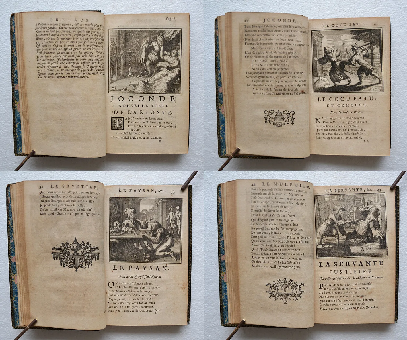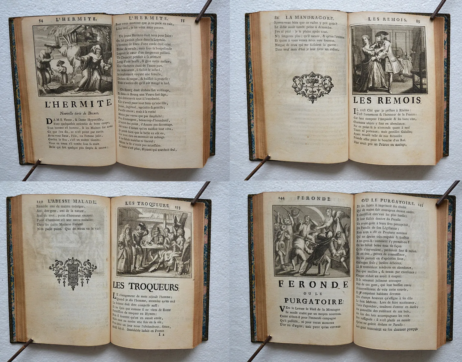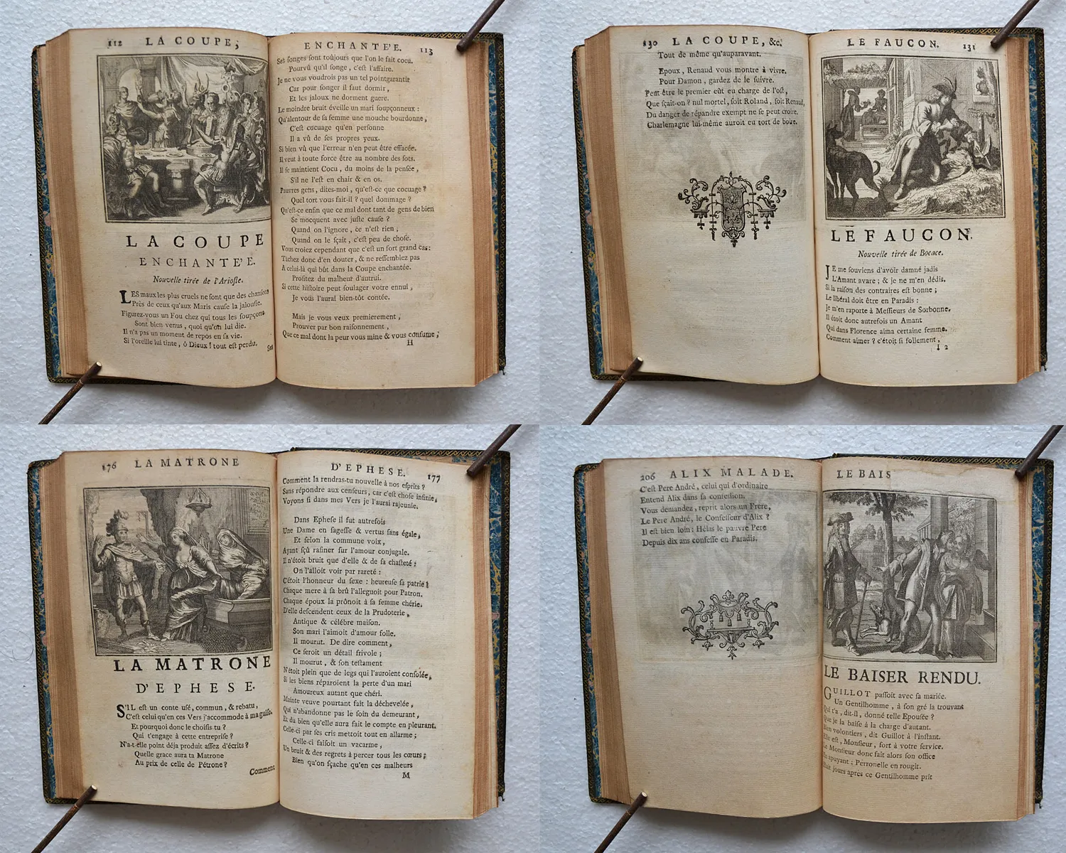 « Ces illustrations bien connues avaient paru pour la première fois dans la jolie édition d’Amsterdam, 1685, fort recherchée des bibliophiles et que beaucoup d’amateurs, malgré sa date, ajoutent avec raison aux éditions du XVIII° siècle » (Cohen – Guide de l’amateur de livres à gravures du XVIII° siècle).